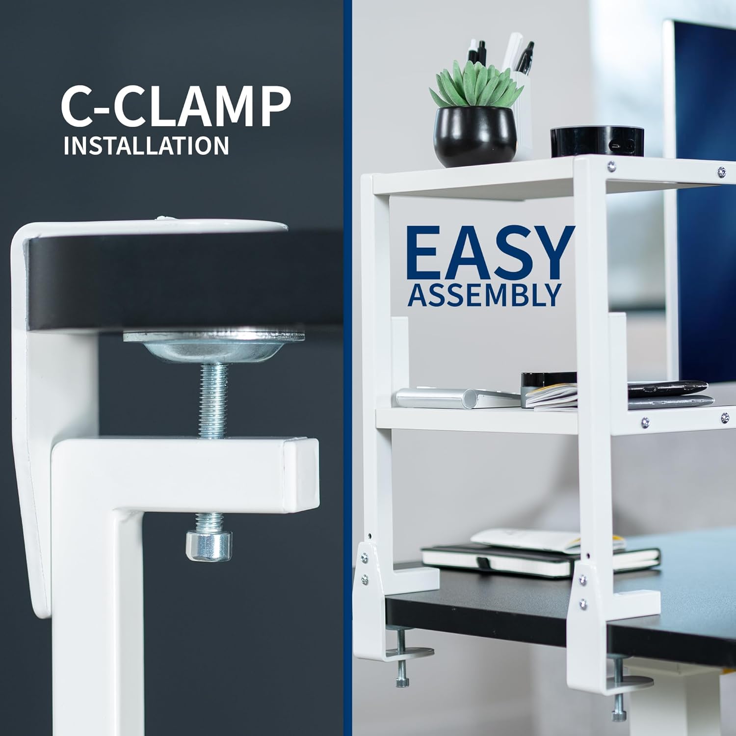 Top Pick — discover the VIVO Clamp-on 13 inch Above or Below Desk 2-Tier Shelving Unit for Table Accessories, Gaming Devices, and More, Storage Tray, Desktop Organizer, White, STAND-SHELF2CW by VIVO, built for performance and designed for life in the United States.