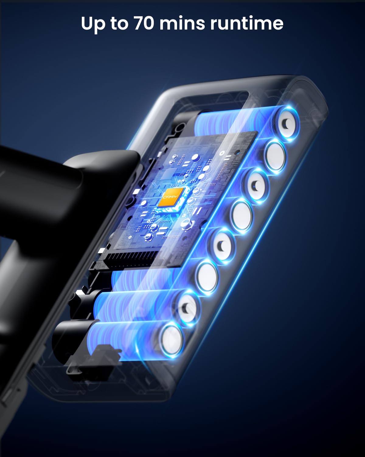 - [Max 70 Mins Running Time] Equipped with 8*2800mAh rechargeable battery pack, breaking the limitations of battery life and providing up to 70 minutes. X100 stick vacuum can complete the whole house cleaning of large households in one go, from living room to bedroom, study room to kitchen, without frequent charging, and the cleaning process is completed in one go!