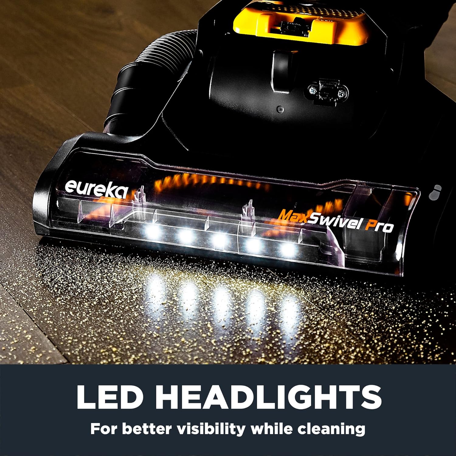 About Eureka Powerful Upright Vacuum Cleaner for Home Pet Hair, Lightweight Household Upright Vacuum for Carpet and Hard Floor, MaxSwivel Pro NEU350 with Pet Tool, Yellow