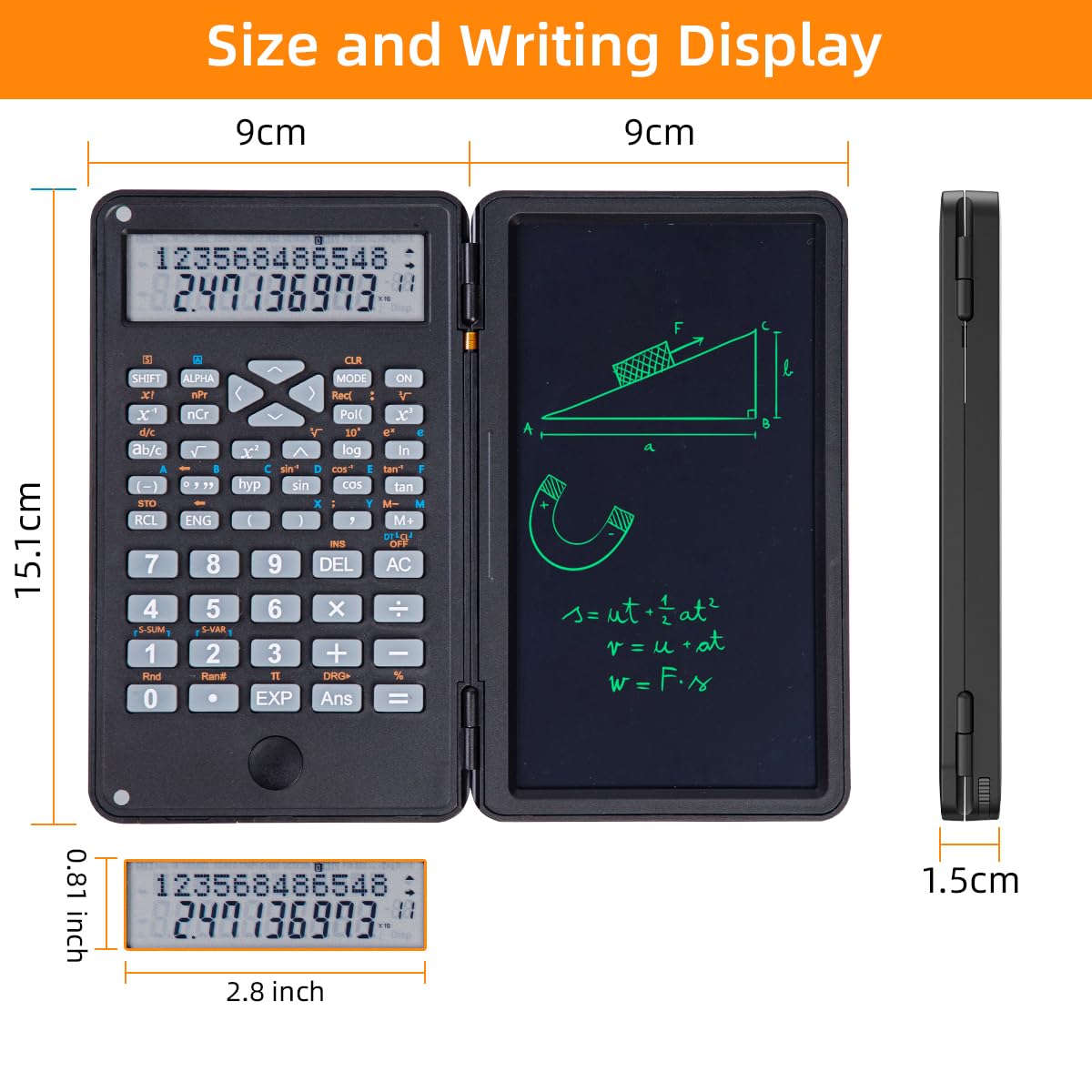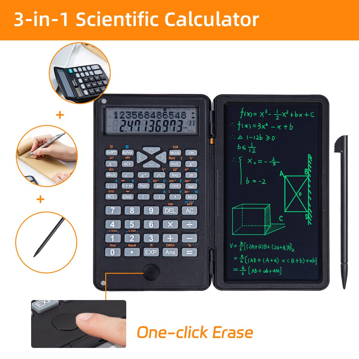 - 【Versatile for Every Scenario】: Perfect for a wide range of applications – from classroom learning and exam preparation to office data processing, report calculations, and on – site engineering measurements. Whether you’re a student, office worker, engineer, or accountant, this calculator with a writing tablet boosts your productivity and simplifies your tasks.
