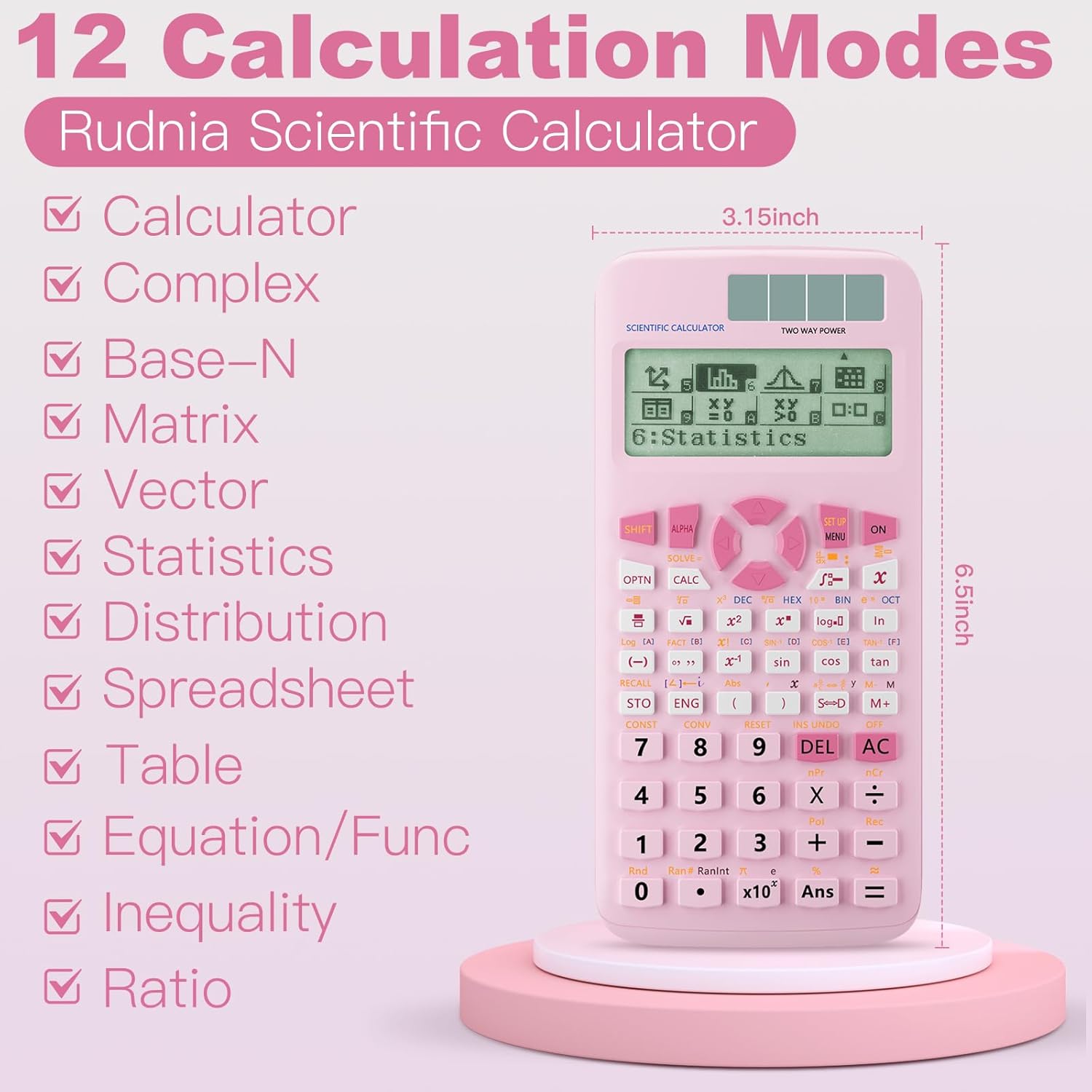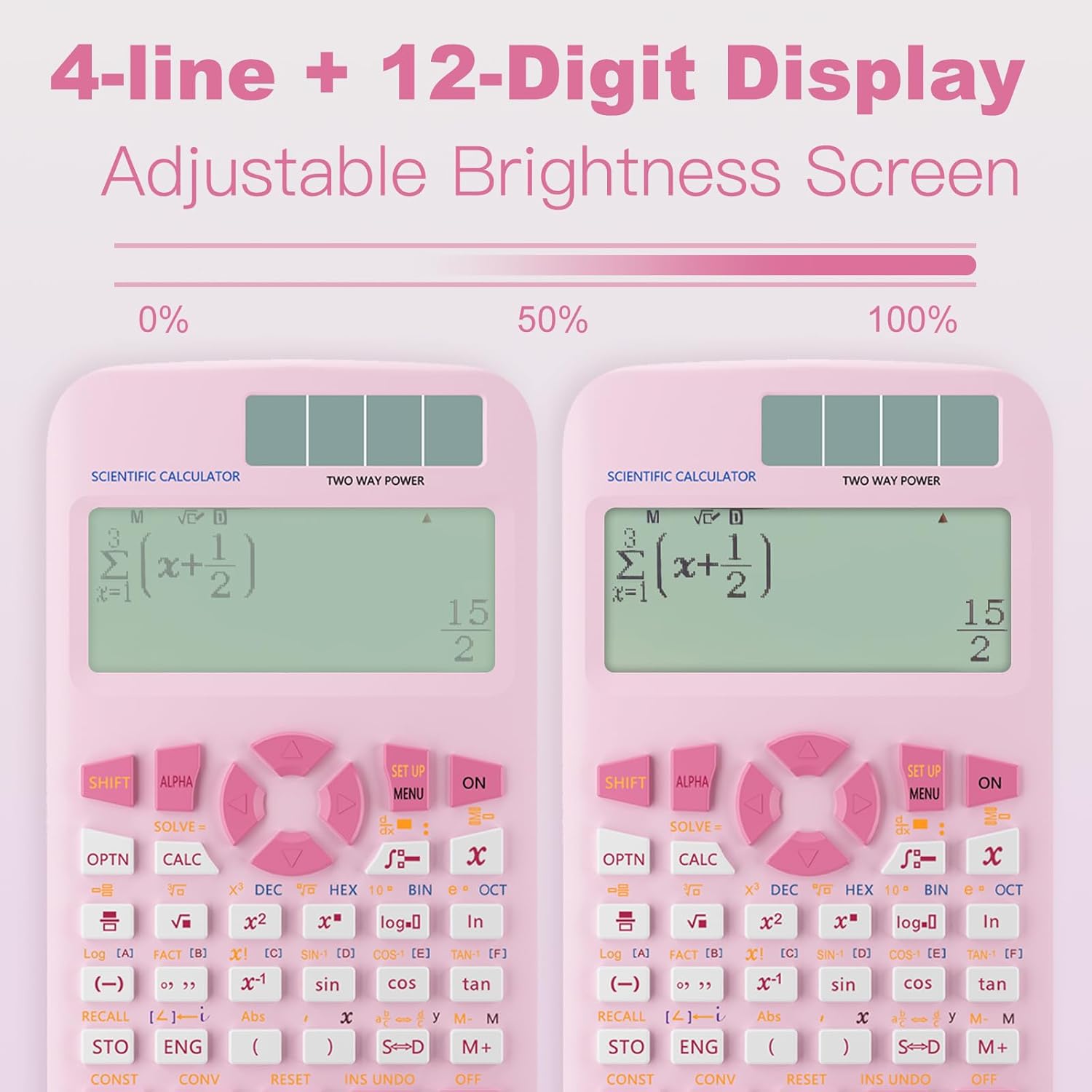 The Scientific Calculators,Rudnia Pink Solar Calculators with 4-line Display,10+2 Digits and 552 Function Calculator,School Supplies for Middle High School and College Students (Pink) by Rudnia combines reliability, modern design, and user-focused engineering. Perfect for everyday use, it delivers dependable results for American customers who value quality.