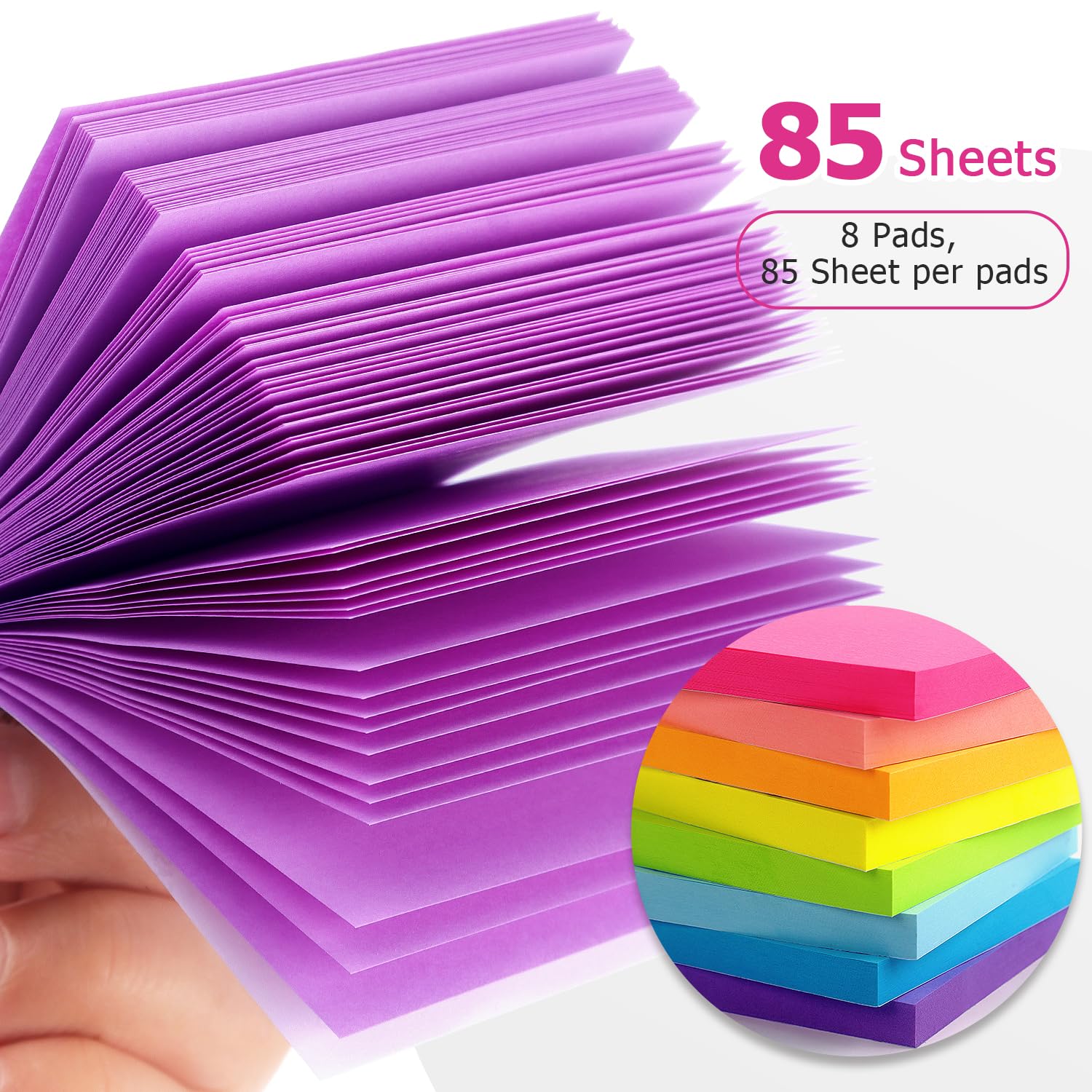 About Eastern Wolf 8 Pads Sticky Notes 3×3 Self-Stick Notes 8 Bright Multi Colors Purple Sticky Notes, 85 Sheet/Pad
