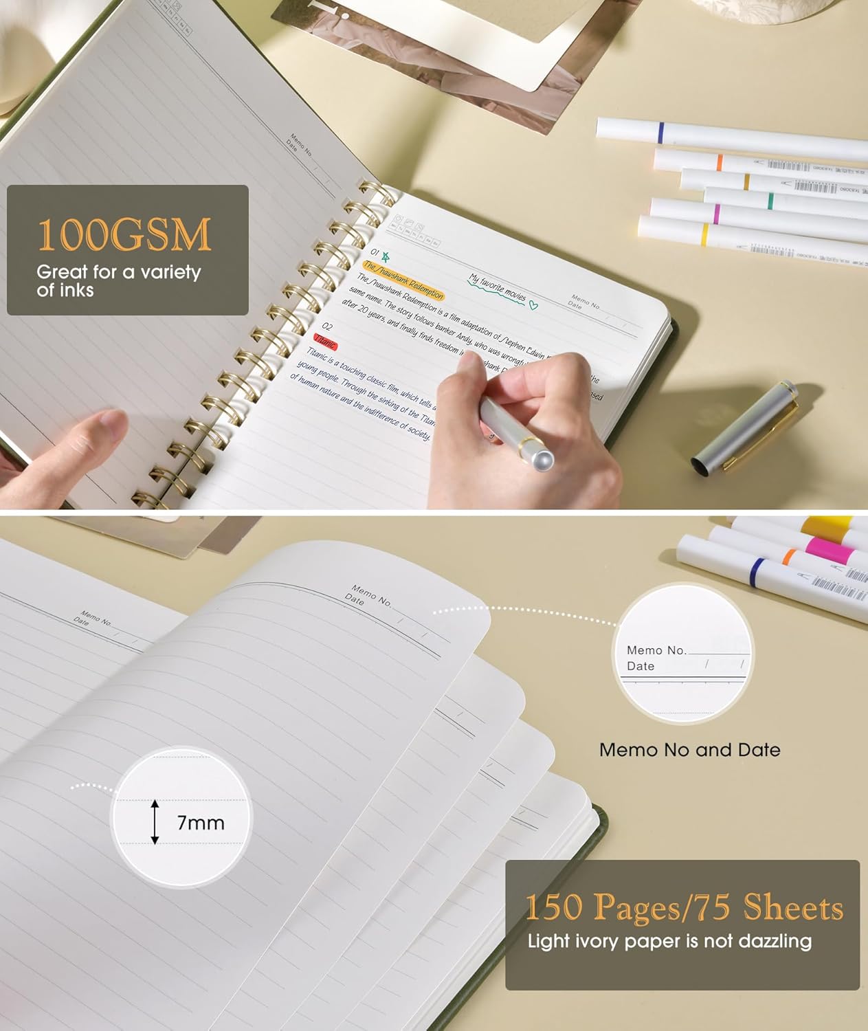 - 【A5 Journal with 100 GSM High-Quality Paper】 Crafted from 100 GSM thick ink-friendly paper, our notebook prevents ink bleed-through and ghosting. It accommodates various pens, including ballpoint, gel, and fountain pens. Standard 7mm-space Classic College Grid Notebook with “Memo Number” and “Date” headings on each page to help you keep track of dates. A5 size 5.75″ x 8.38″, perfect size for carrying around or put into your bag or purse.