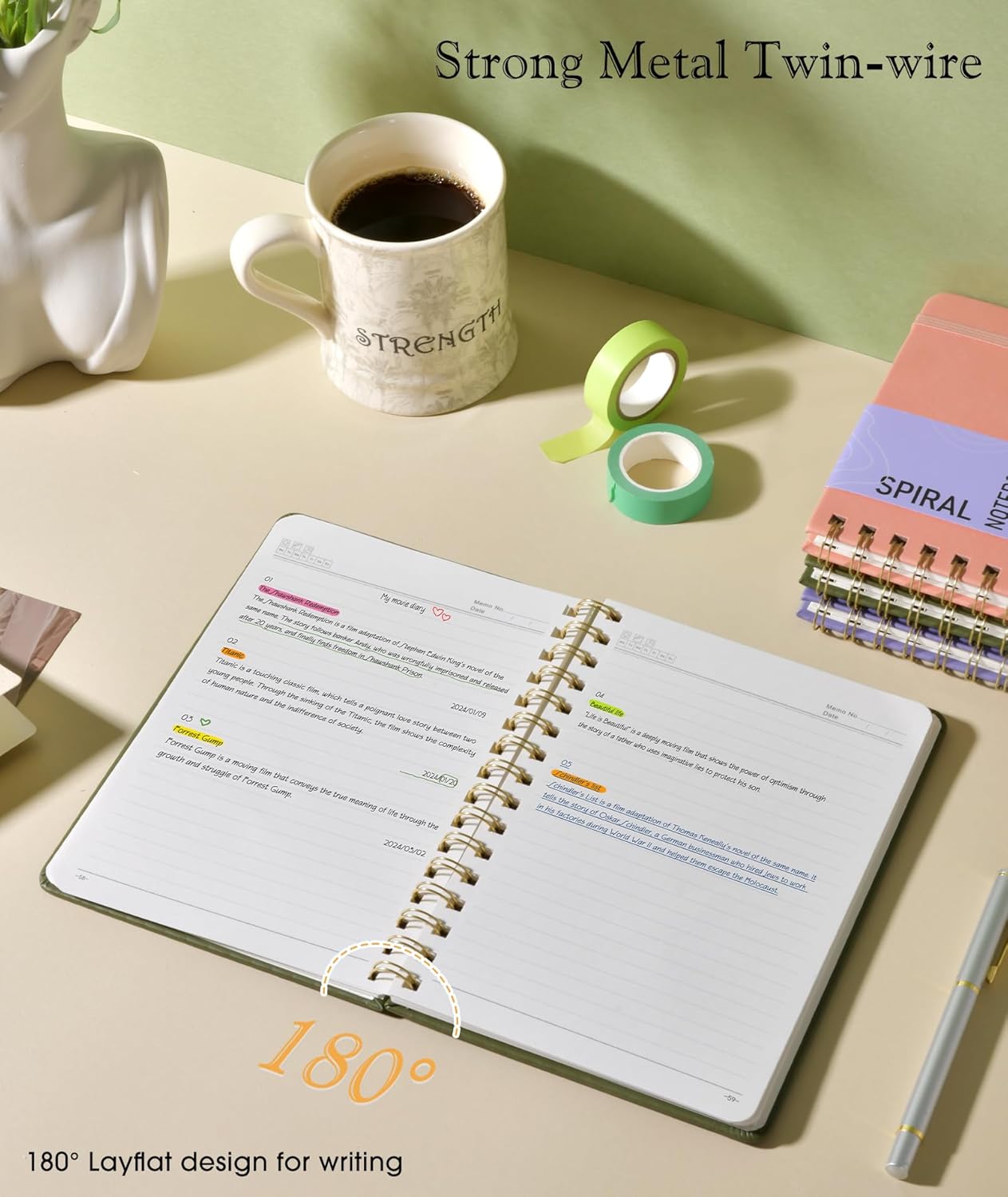- 【Metal Twin-wire Construction】Our wire-bound spiral journal notebook has a sturdy gold-color double wire spiral with easy-to-turn pages and keeps pages attached reliably. Metal wire ring makes it easy to tear out pages without disturbing the rest of the pretty notebook. The 180°flat binding makes it easy to take notes with either hand, making it easier to read and more efficient to keep track of things.