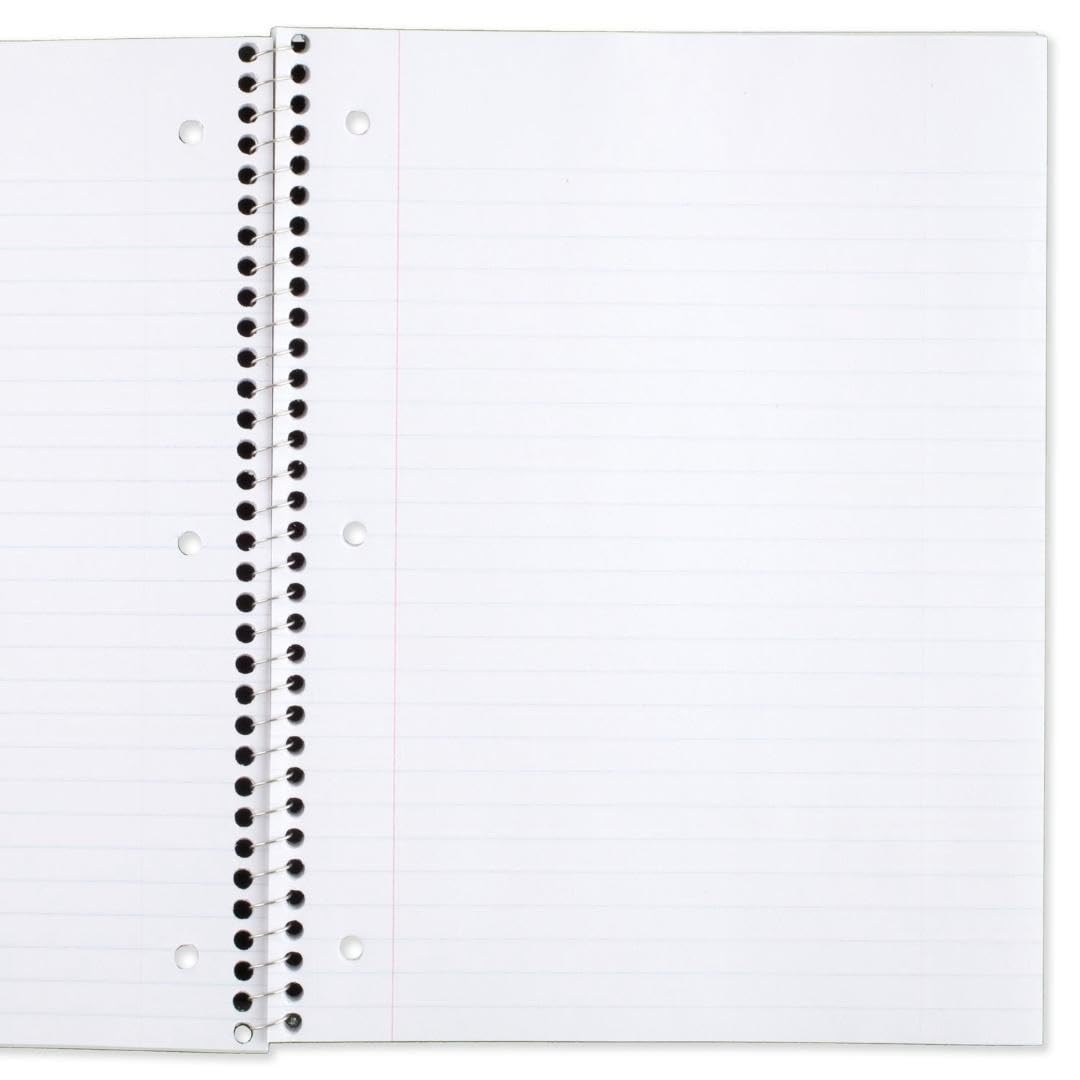 Mead Spiral 1 Subject Notebook is versatile and is ideal for a variety of uses including in-class assignments and homework. Perfect to use for 1 subject, this spiral notebook comes in handy for your favorite class or any project. With 70 wide ruled, double-sided sheets, thereโs plenty of notetaking space and the cover has a writable label so you can assign the notebook to a specific subject. Wide ruling is ideal for the younger student who needs more space between lines. Sheets measure 7-1/2″ x 10-1/2″ when torn out with an overall size of 8″ x 10-1/2″. Perforation easily tears out with clean edges. Notebook is 3-hole punched to store in your favorite binder. Covers are coated for durability. Includes 6 notebooks in randomly selected colors: Red, Blue, Green, Yellow, Purple or Black. Colors will vary with each purchase. Assembled in U.S.A. with U.S. and foreign parts.