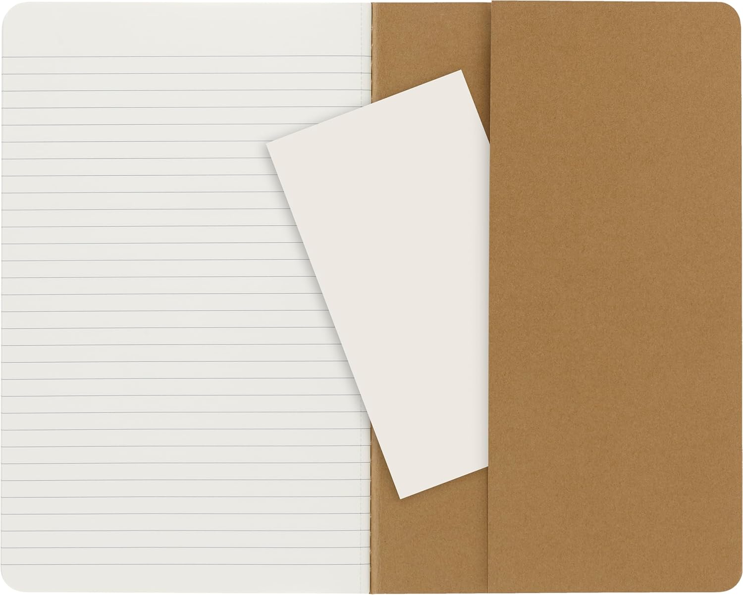 - MOLESKINE CAHIER: This 5 x 8.25 ruled journal has a flexible heavy-duty customizable cardboard cover, a pocket for loose notes & visible stitching on the spine. The last 16 sheets are detachable.