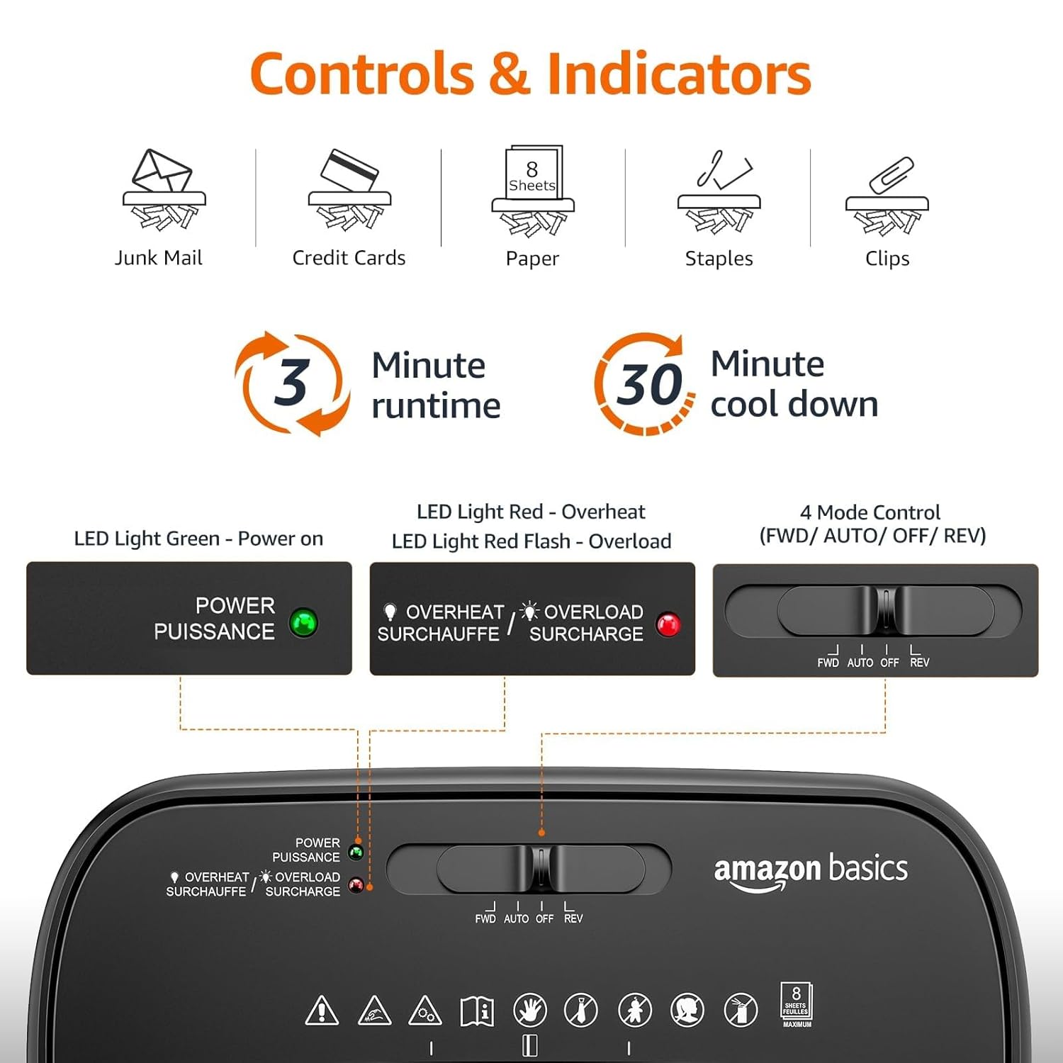 About Amazon Basics 8-Sheet Cross Cut Paper Shredder and Credit Card Shredder – Black