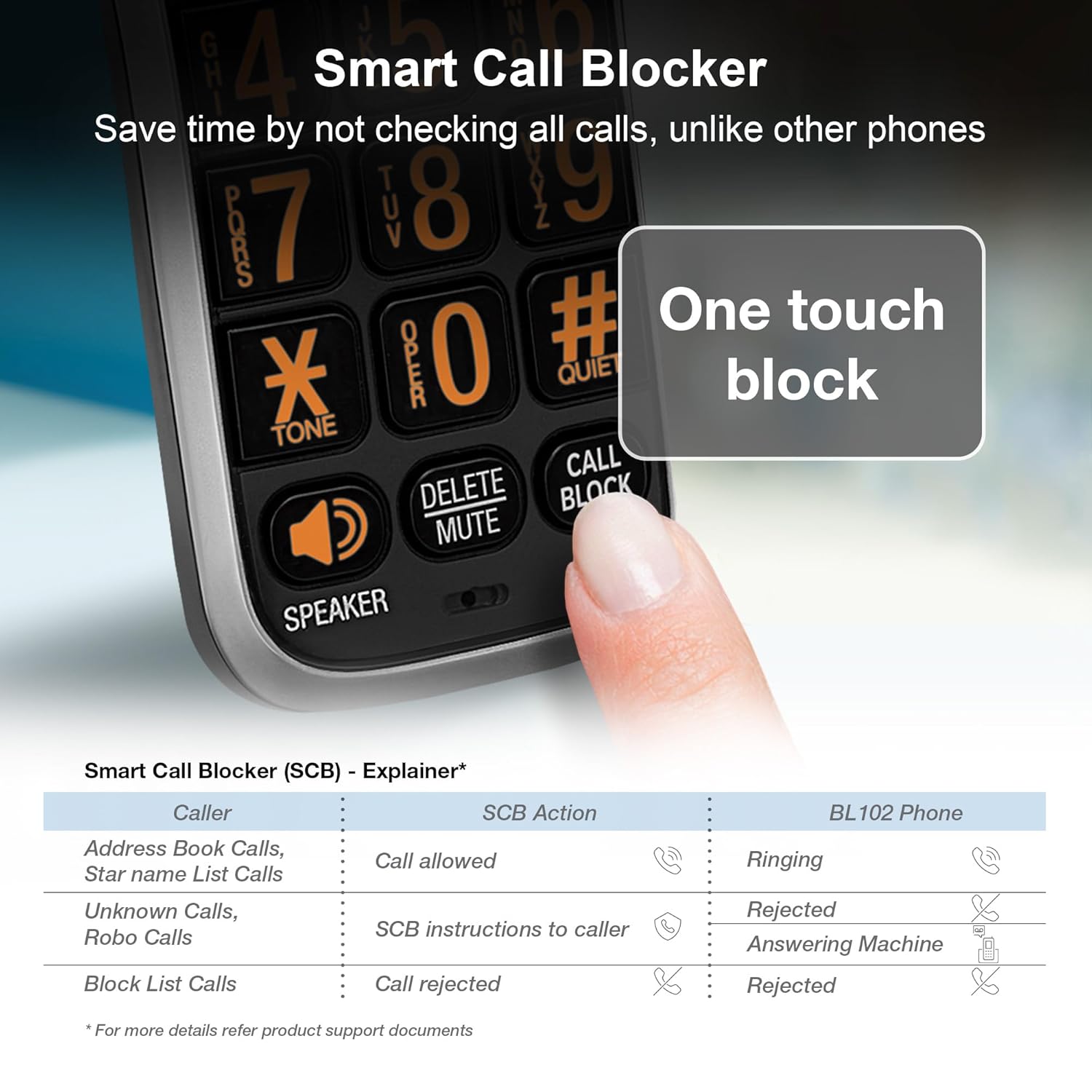 - [SMART CALL BLOCKER & CALLER ID ANNOUNCE] Say goodbye to unwanted calls. Robocalls on your landline are automatically blocked from ever ringing through – even the first time. You can also permanently blacklist any number you want with one touch on the delicated key on the handset. The call block directory can store up to 1,000 name and number entries. Plus, the handset announces the name of the caller, so you can decide on answer the call or block it – screening call is never easier.