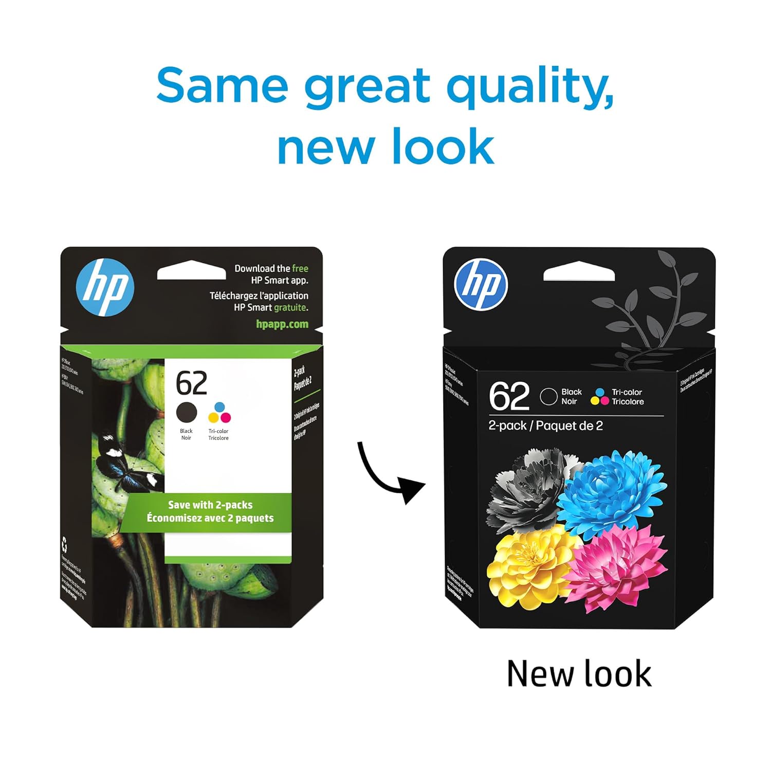 Photos: HP 62 Black/Tri-color Ink Cartridges for HP Printers (2-pack) | Works with Printer Series: ENVY 5540, 5640, 5660, 7640, OfficeJet 5740, 8040, OfficeJet Mobile 200, 250 | N9H64FN by HP