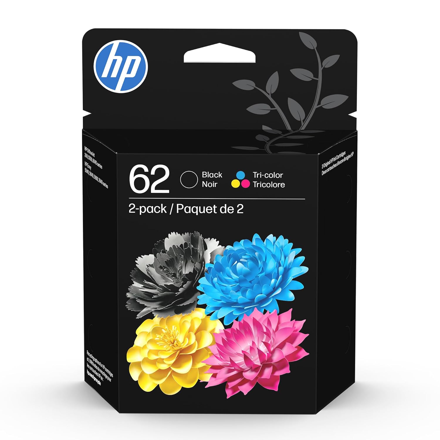 HP 62 Black/Tri-color Ink Cartridges for HP Printers (2-pack) | Works with Printer Series: ENVY 5540, 5640, 5660, 7640, OfficeJet 5740, 8040, OfficeJet Mobile 200, 250 | N9H64FN by HP