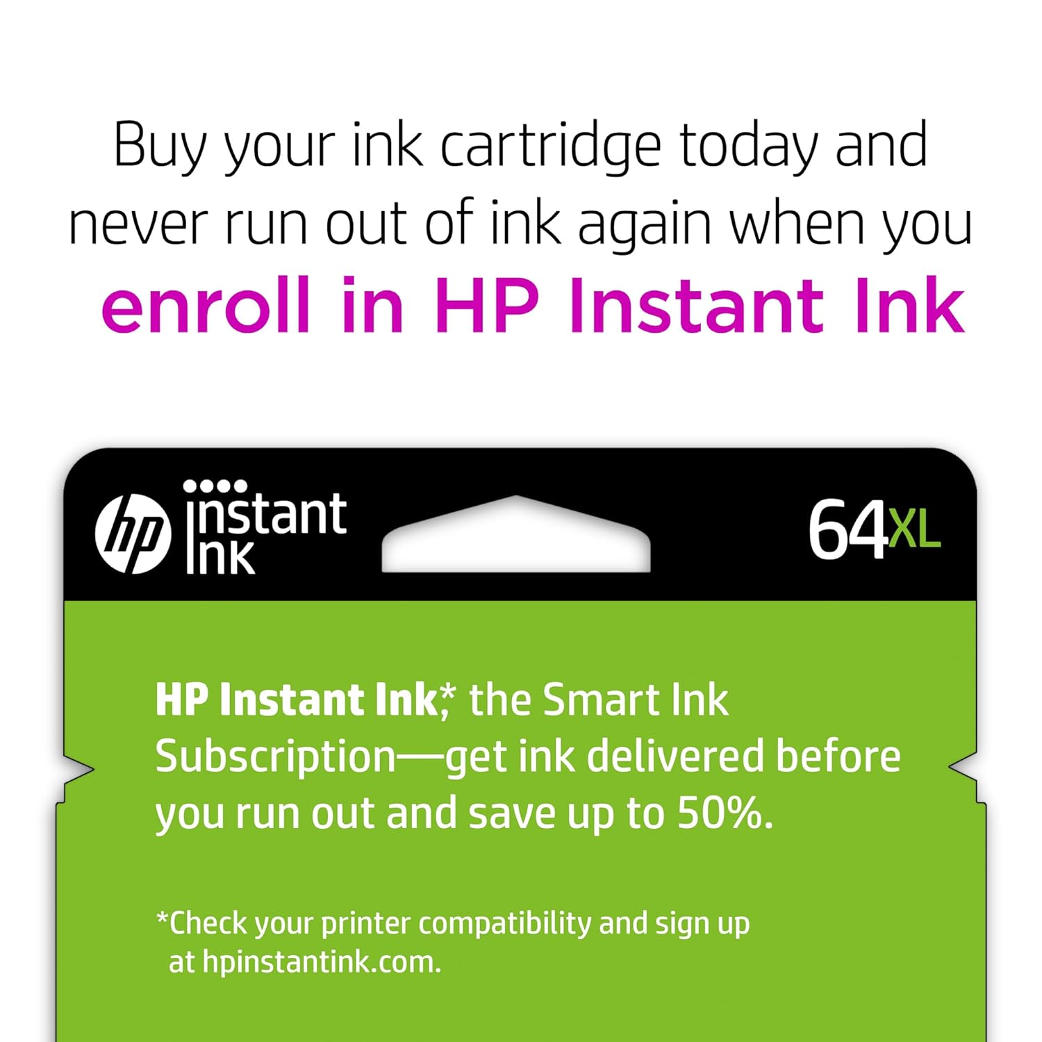 About HP 64XL Tri-color High-yield Ink Cartridge for HP Printers | Works with Printer Series: ENVY Inspire 7950e; ENVY Photo 6200, 7100, 7800; Tango | Eligible for Instant Ink | N9J91AN