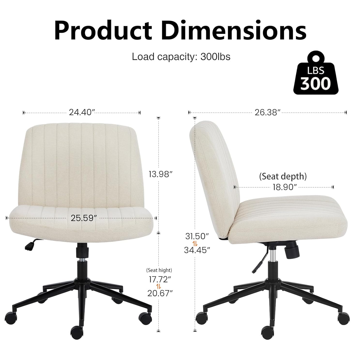- 【Adjustable for Any Space】Featuring height adjustment and an armless design, this versatile desk chair adapts to different needs—perfect as a cross legged office chair, vanity chair with wheels, or even a stylish accent chair for the living room.