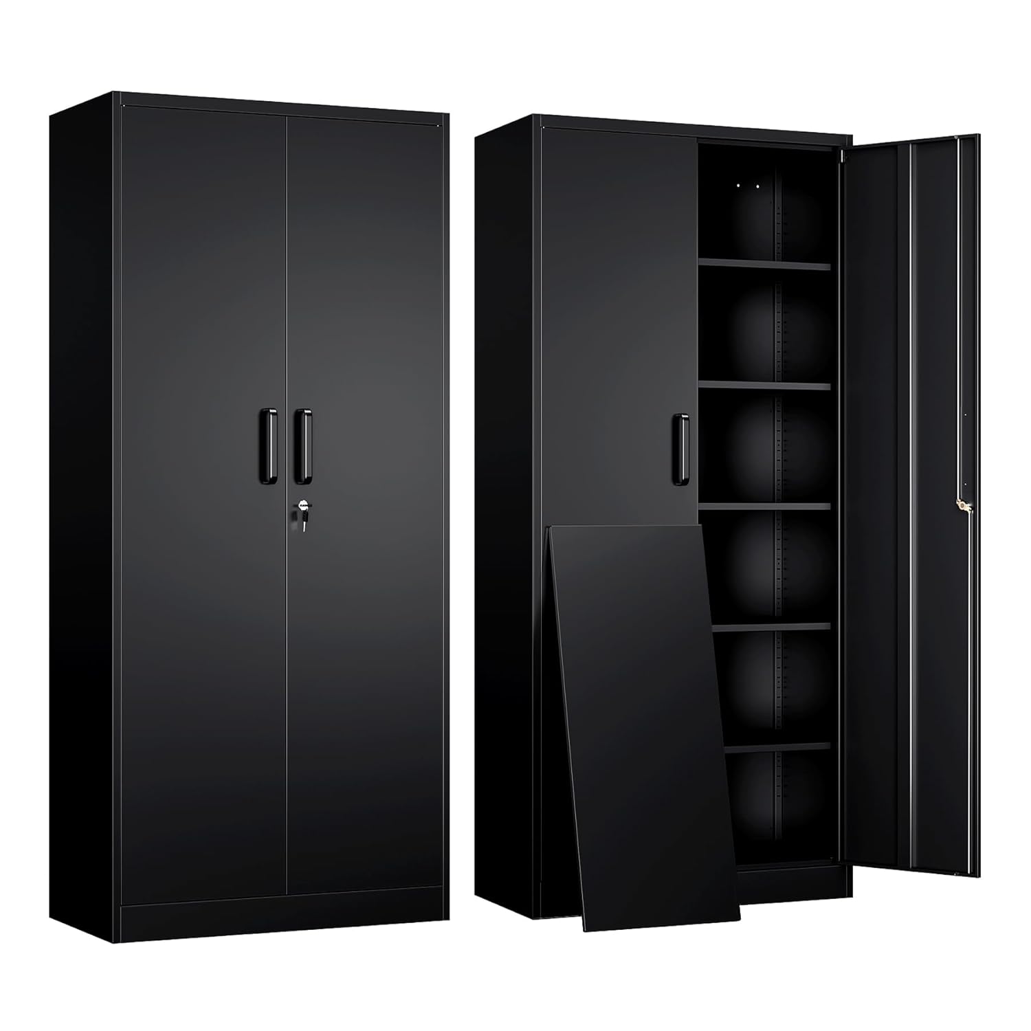 About Yizosh Metal Garage Storage Cabinet with 2 Doors and 5 Adjustable Shelves – 71″ Steel Lockable File Cabinet,Locking Tool Cabinets for Office,Home,Garage,Gym,School (Black)