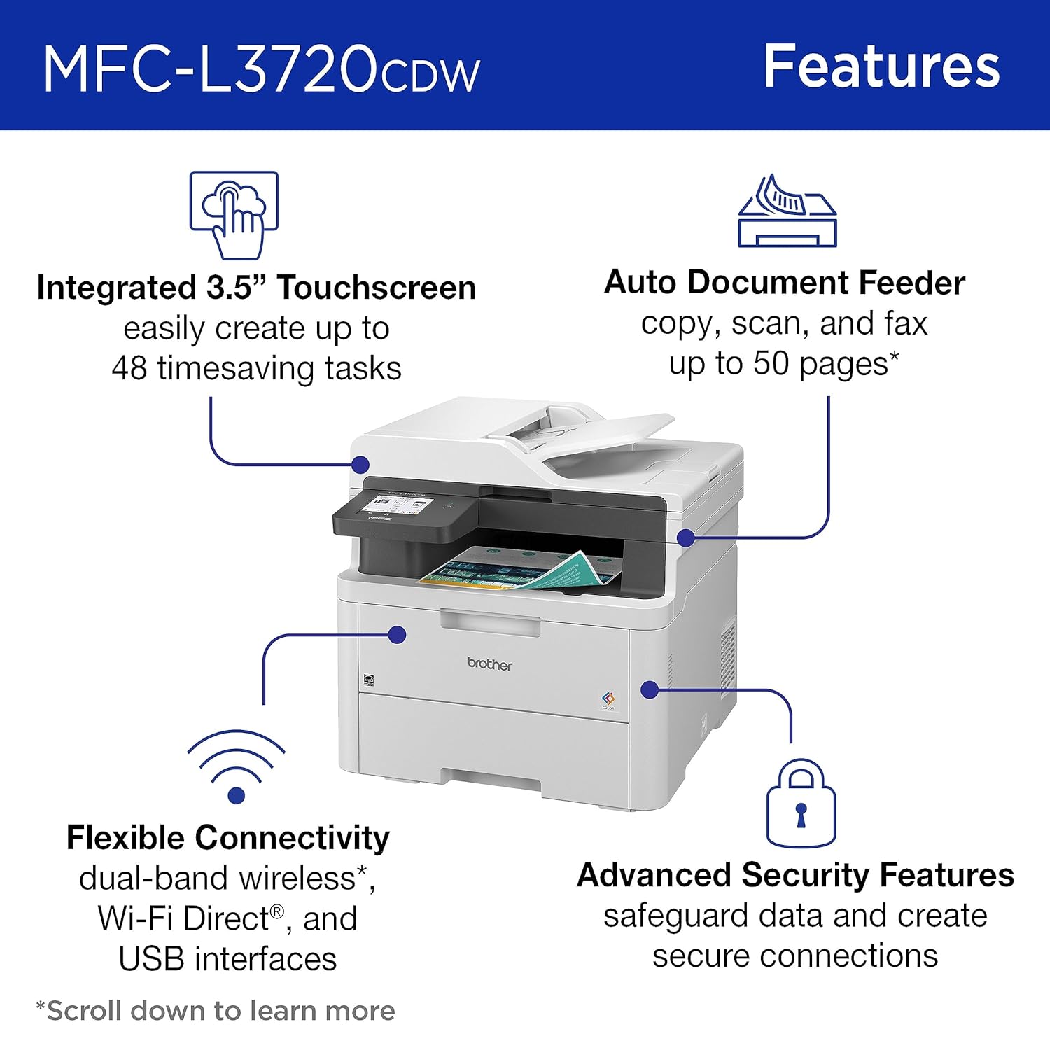 Photos: Brother Color Laser Printer All-in-One with Scanner, Copier and Fax – Professional Wireless Business Printer with Auto Duplex and 250-Sheet Capacity for Small Office (MFC-L3720CDW) by Brother