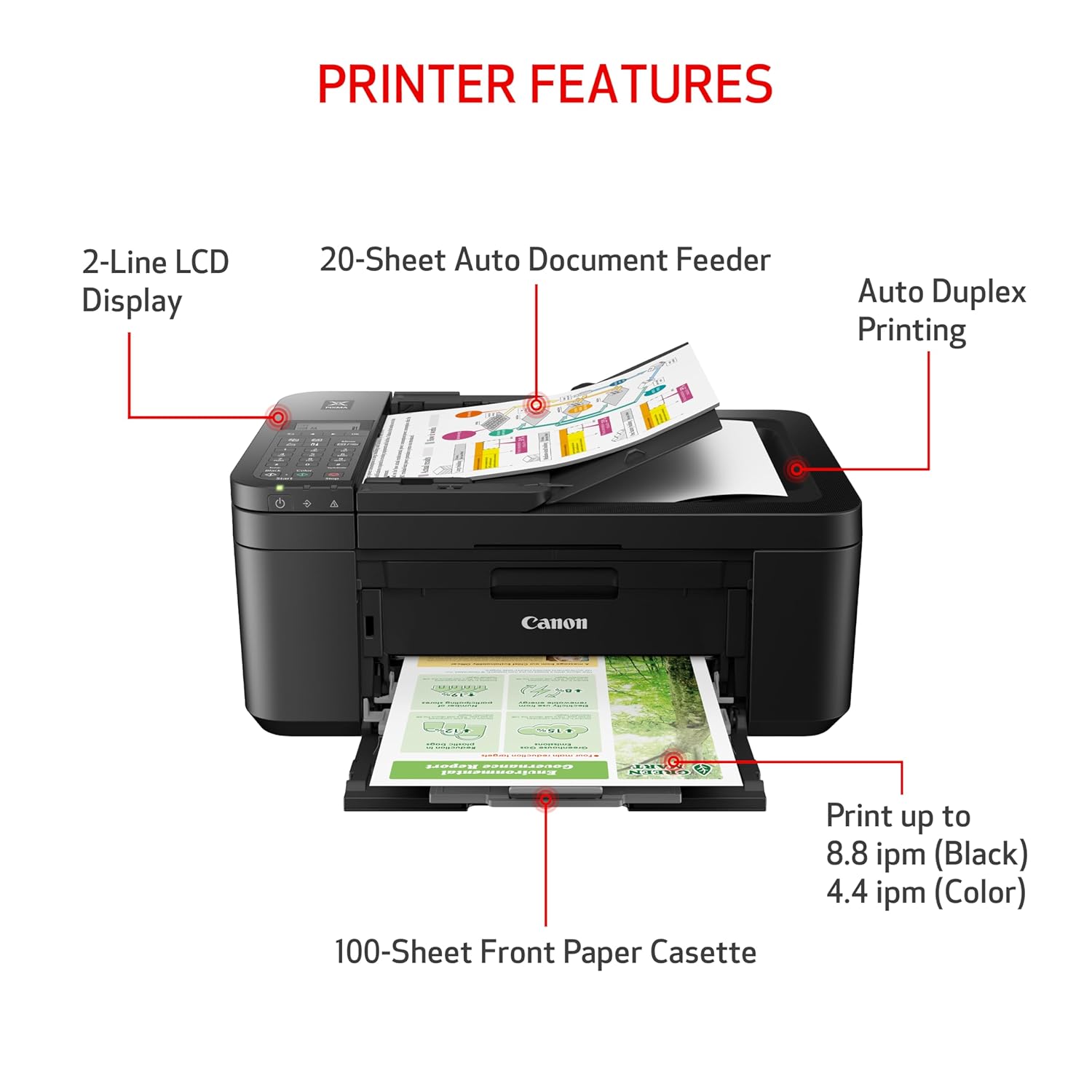 - Auto 2-sided printing and auto document feeder.