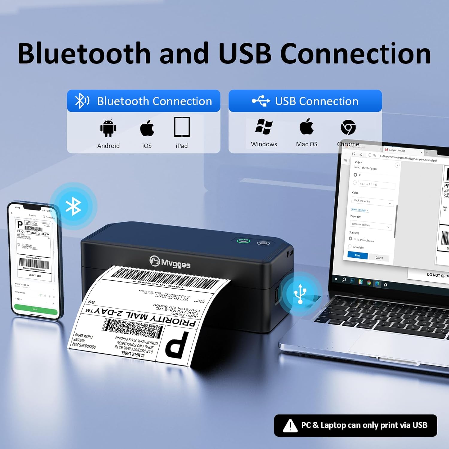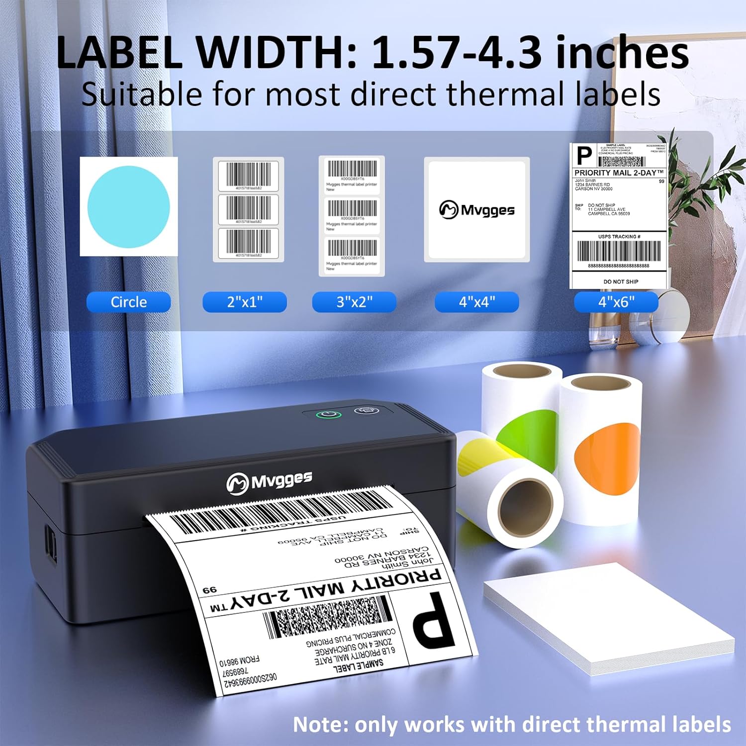 Specification: Mvgges Shipping Label Printer,Bluetooth 4×6 Thermal Label Printer for Small Business Office or Home, Compatible with Android, iOS, Windows and Mac, Widely Used for… by Mvgges