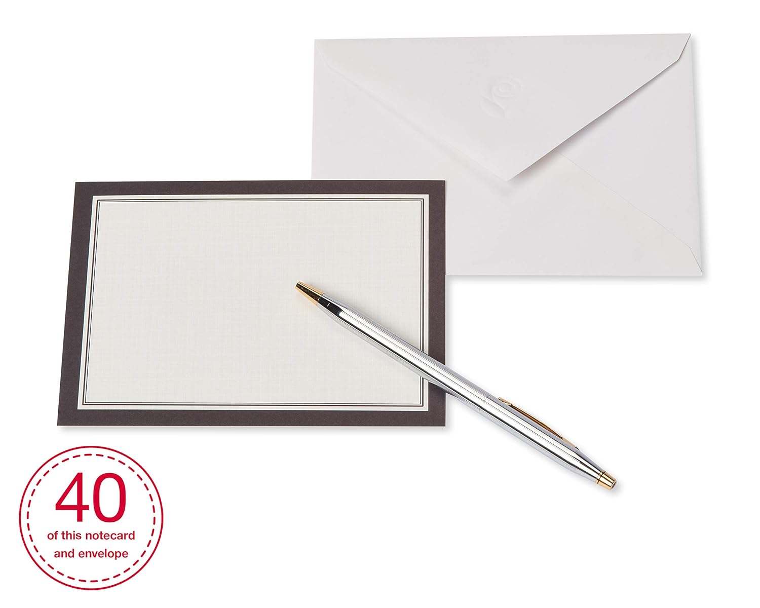 - Includes 40 single panel note cards and 40 white envelopes
