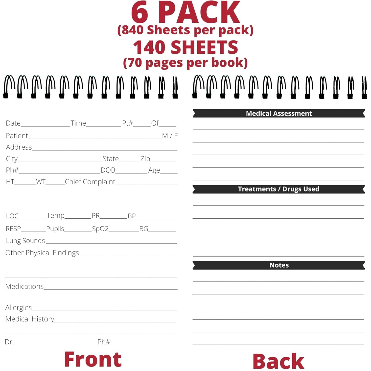 - Stay Organized: Books include all. the vital essentials. Sp02, LOC, TEMP, PR, BP… etc.. it is a must have in your EMT supplies as your EMR note book