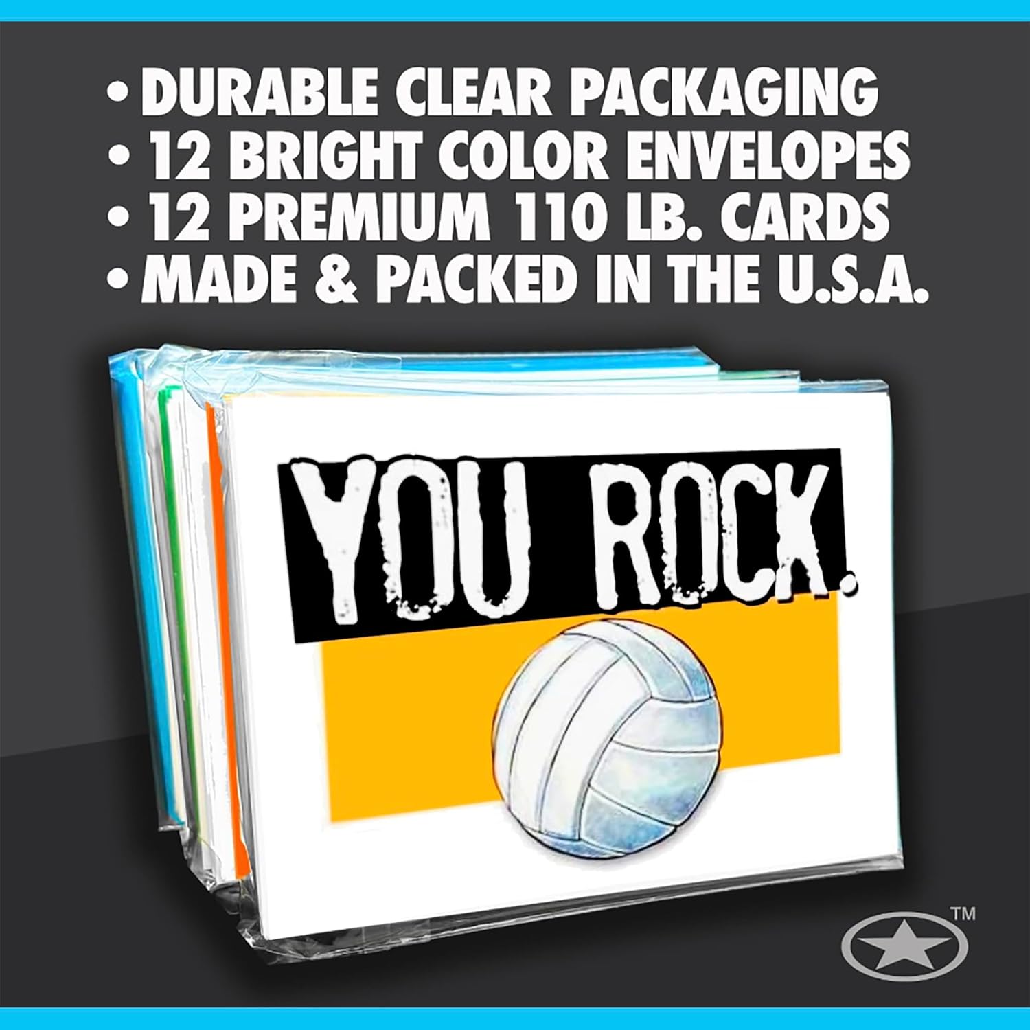VOLLEYBALL YOU ROCK Note Cards 12-Pack (4.25″x5.5″) Illustrated Sports Powercards Thank You Note Card Set Awesome for Volleyball Players, Coaches, Fans and Fanatics – They’ll… by Play Strong