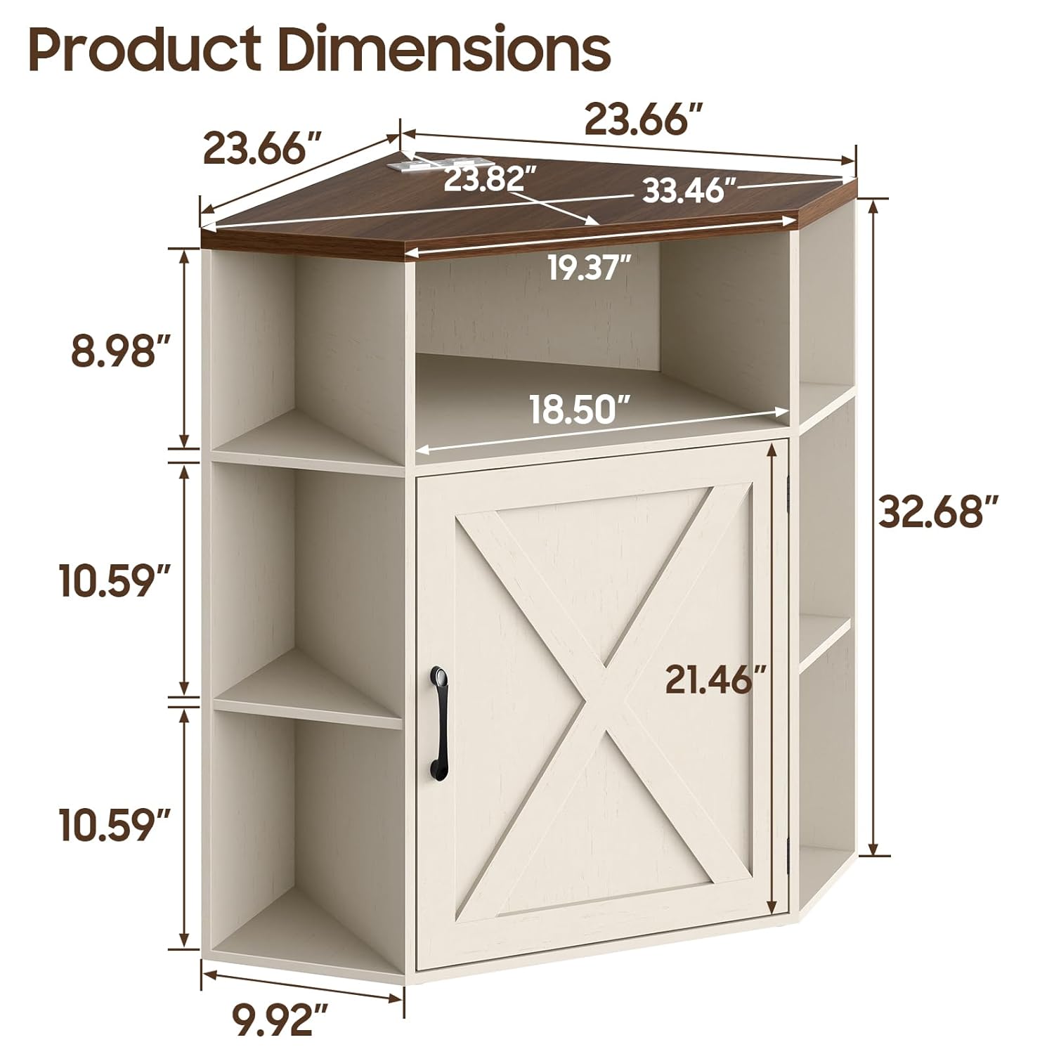 - 3-TIER CORNER CABINET WITH CHARGING STATION: The Corner Storage Shelf is built in 2 USB charging ports and 2 outlets for your iPad, phone, table lamp and etc., which provides great convenience to your life whenever you need. The length of the cable is 5.9 ft long.