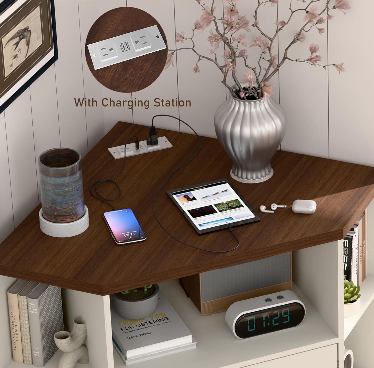 Photos: Corner Cabinet, Corner Storage Shelf with USB Ports and Outlets Industrial Organizer for Small Space Wooden 6-Cubby Bookshelf for Study, Playroom, Living Room (Off White) by Vabches