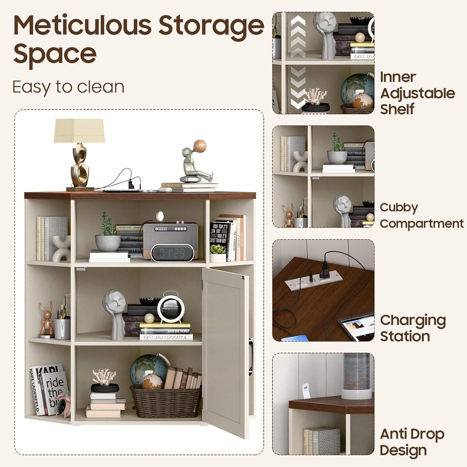 Editor’s Choice — discover the Corner Cabinet, Corner Storage Shelf with USB Ports and Outlets Industrial Organizer for Small Space Wooden 6-Cubby Bookshelf for Study, Playroom, Living Room (Off White) by Vabches, built for performance and designed for life in the United States.