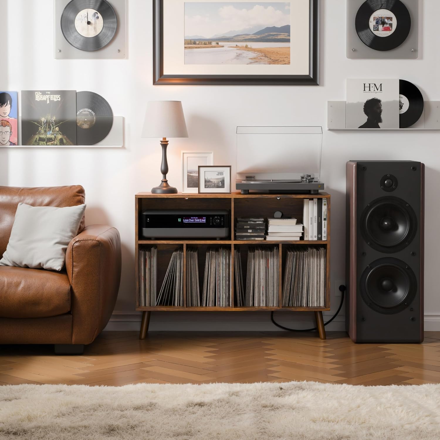 Top Pick — discover the Cozy Castle Record Player Stand with Vinyl Storage Cabinet, Wood Turntable Table Open Shelf Holder Up to 350 Albums Cube Storage Organizer for Living Room, Office, Rustic Brown by Cozy Castle, built for performance and designed for life in the United States.
