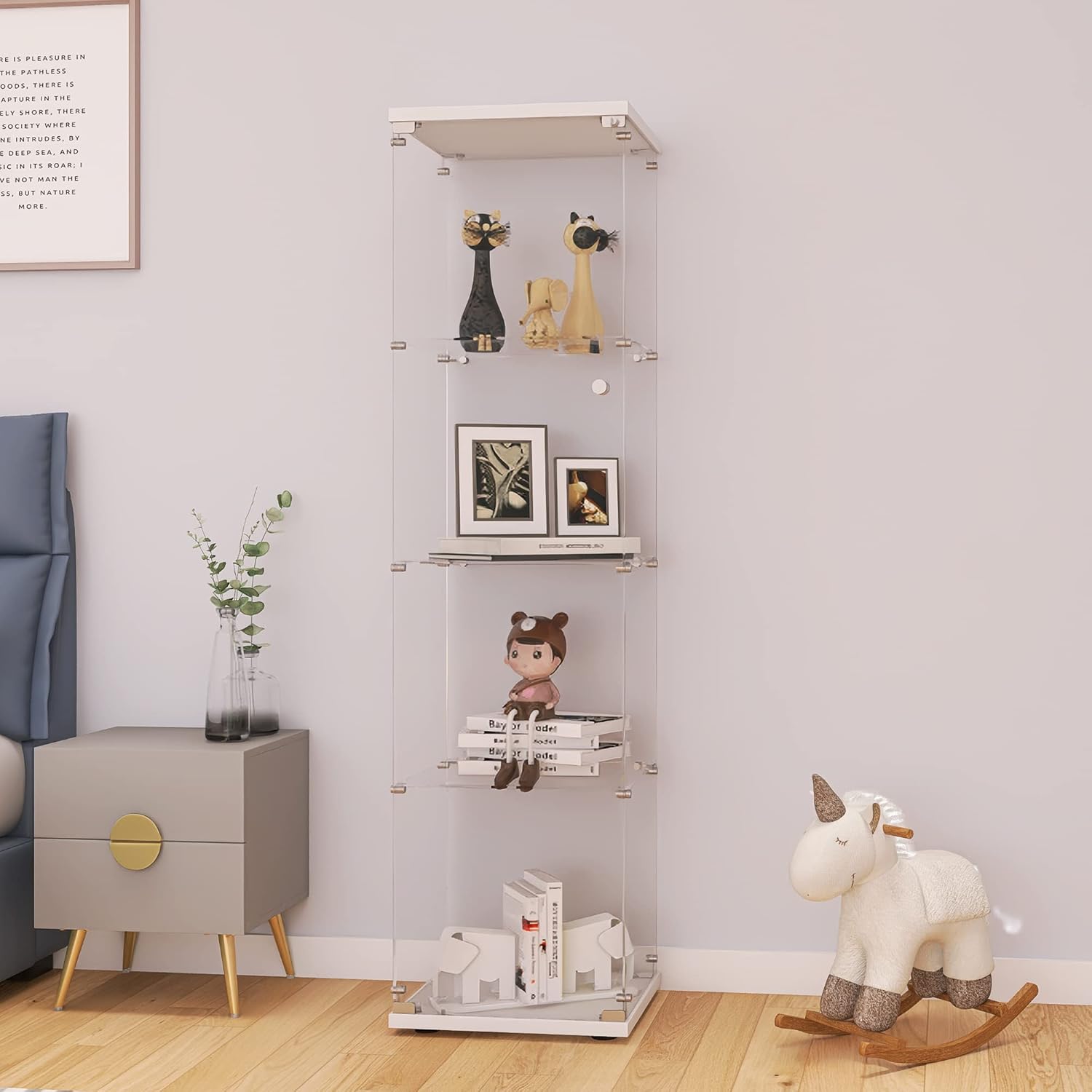 - Concise & Beautiful Design: The transparent frameless design of the bright glass cabinet makes you clearly see your favorite antiques, books, and toys, and is suitable for any family style. It perfectly blends with your elegant home decoration and adds highlights to your room