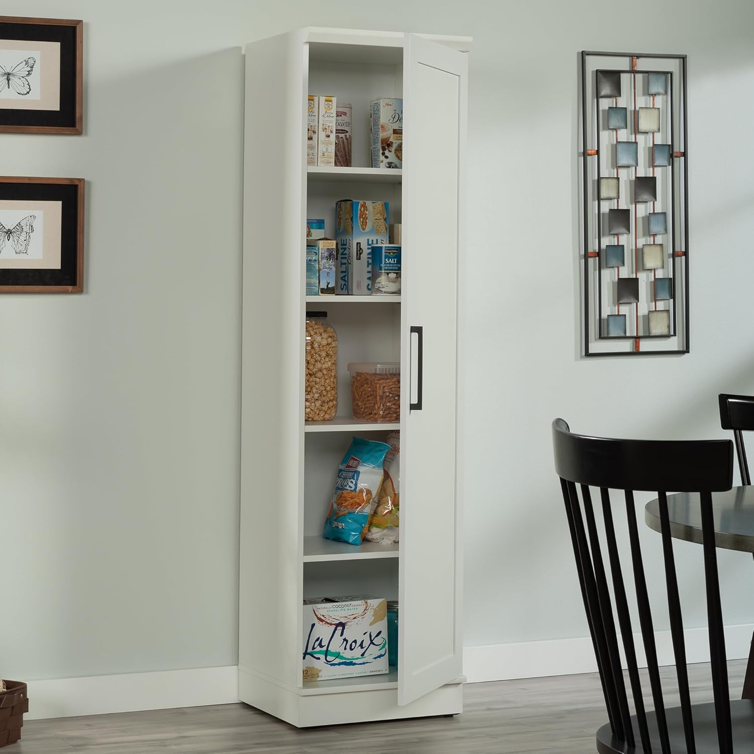 Specification: Sauder HomePlus Narrow Pantry Storage Cabinet Slim Single Door with Adjustable Shelves, Kitchen Laundry Bathroom Storage Cabinet, in Soft White by Sauder