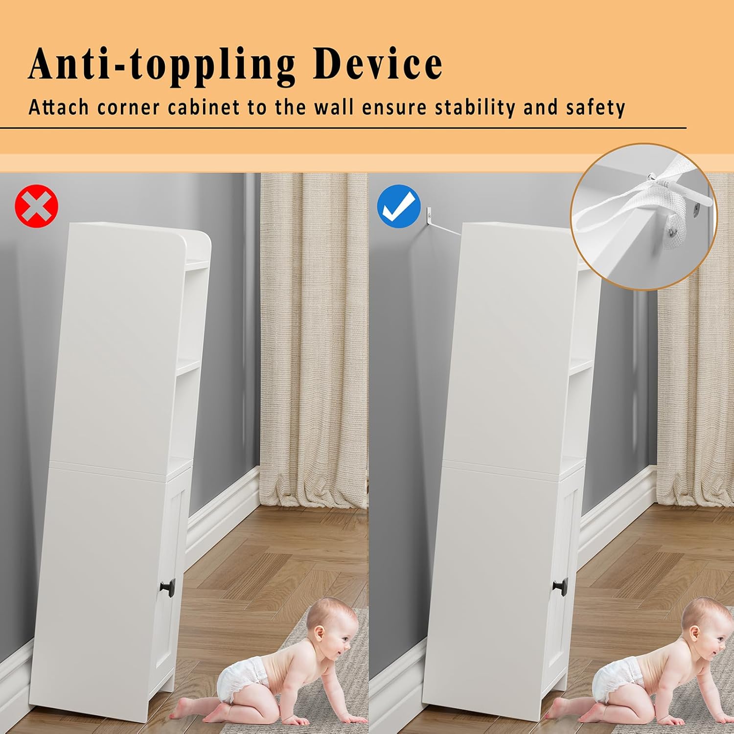 - Bathroom Organizers and Storage Easy Installation: The slim corner cabinet with clear installation instructions included, easy-to-read instructions and numbered parts. You can easily assemble this small cabinet in just a few steps, saving you from the hassle of complicated assembly processes.
