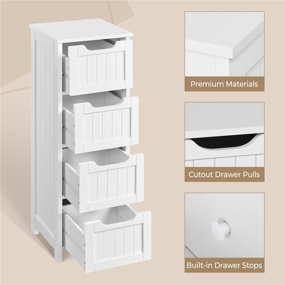 About Yaheetech Bathroom Floor Cabinet, Wooden Side Storage Organizer, 4 Drawers Free-Standing Cabinet for Bathroom/Hallway/Living Room, White