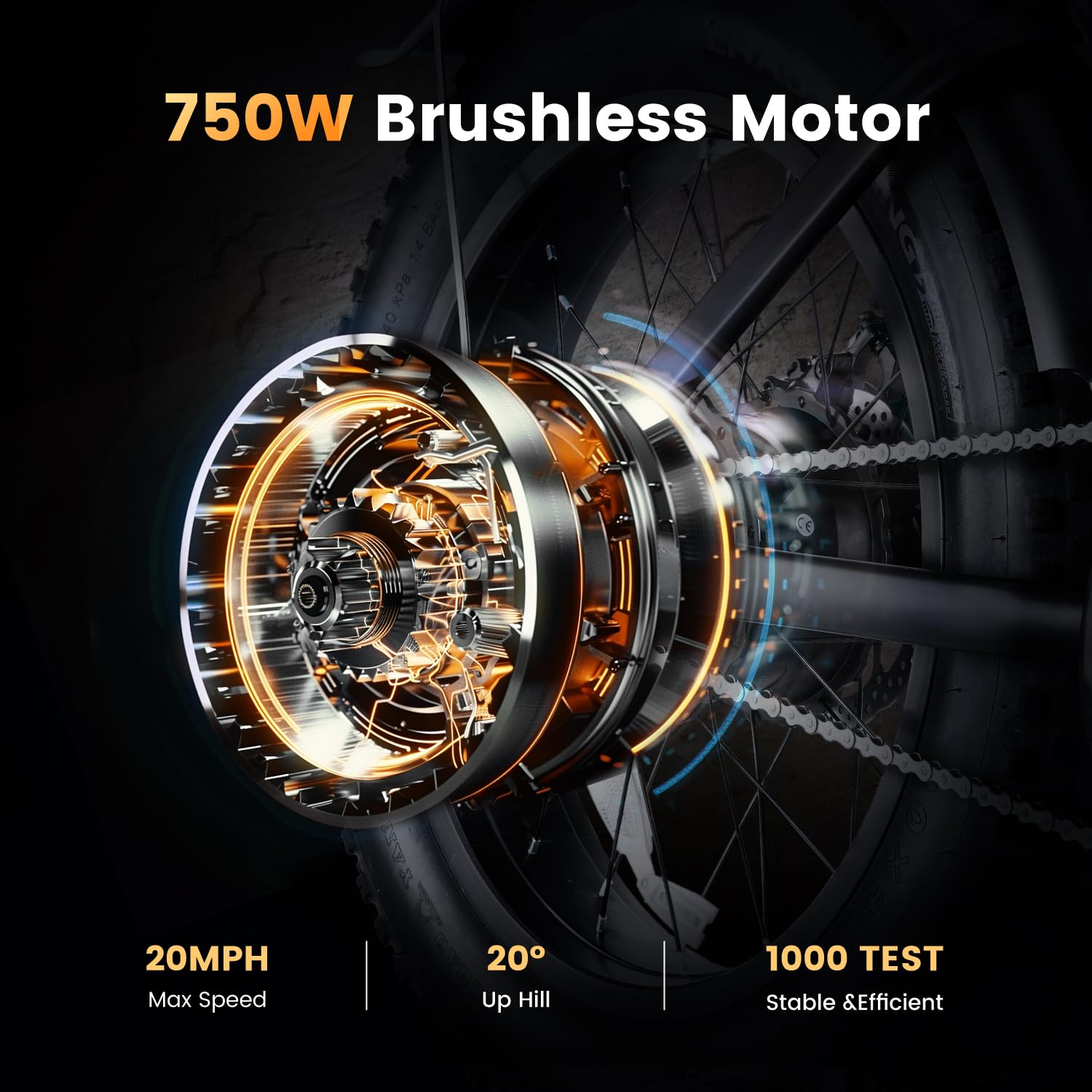 - Feel Unmatched Power:The Cycrun Electric Bike Is Equipped with a High-Performance 750W Brushless Motor, Capable of Reaching a Top Speed of 20 MPH. This e bike Paired with 20-Inch Puncture-Resistant Tires, Offering Enhanced Traction and Grip. Powerful 60Nm Torque Ensures Effortless Traversal Across Various Terrains
