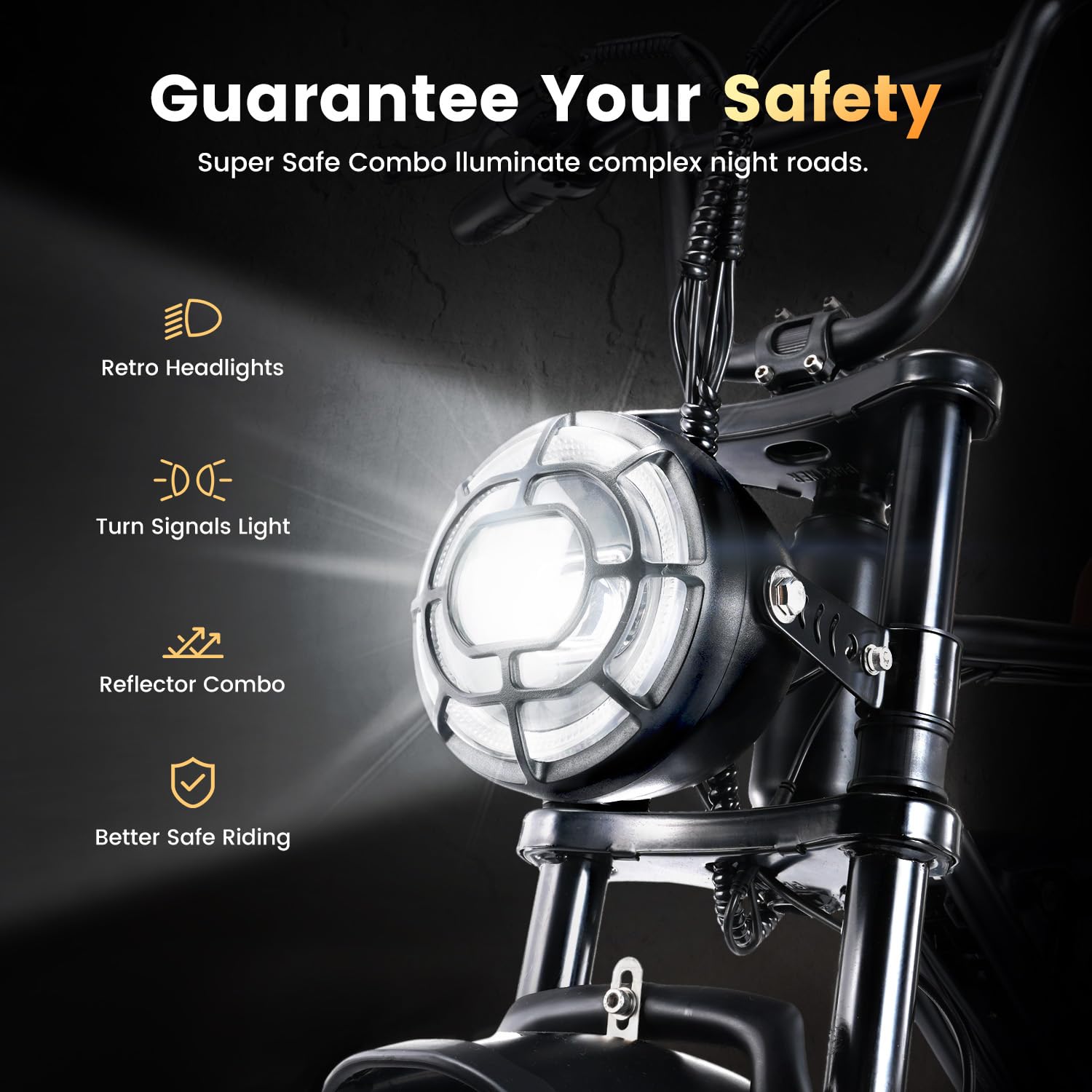- Vintage Frame & Good Support: The Vintage Motorcycle Frame is designed to be Sturdy and Beautiful. Making this Bike Perfect for Daily Commuting and Off-road Exploration. Supplied 80% Pre-assembled for Hassle-free Installation Battery range