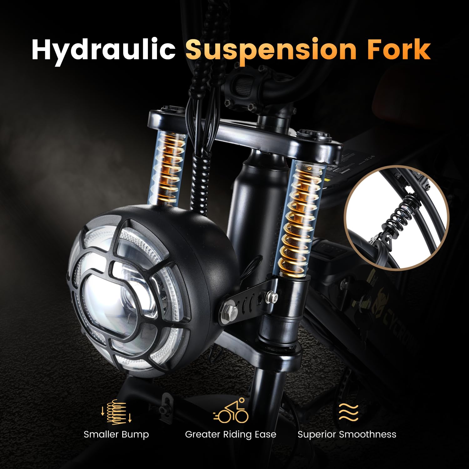 - Superior Suspension Design: Perfect Combination of Hydraulic Front Damping and Oil Spring Damping of this Electric Bike for Adults Effectively Reduces Road Bumps and Vibrations, Providing a Smoother & More Comfortable Ebike Riding Experience, Reducing Physical Fatigue