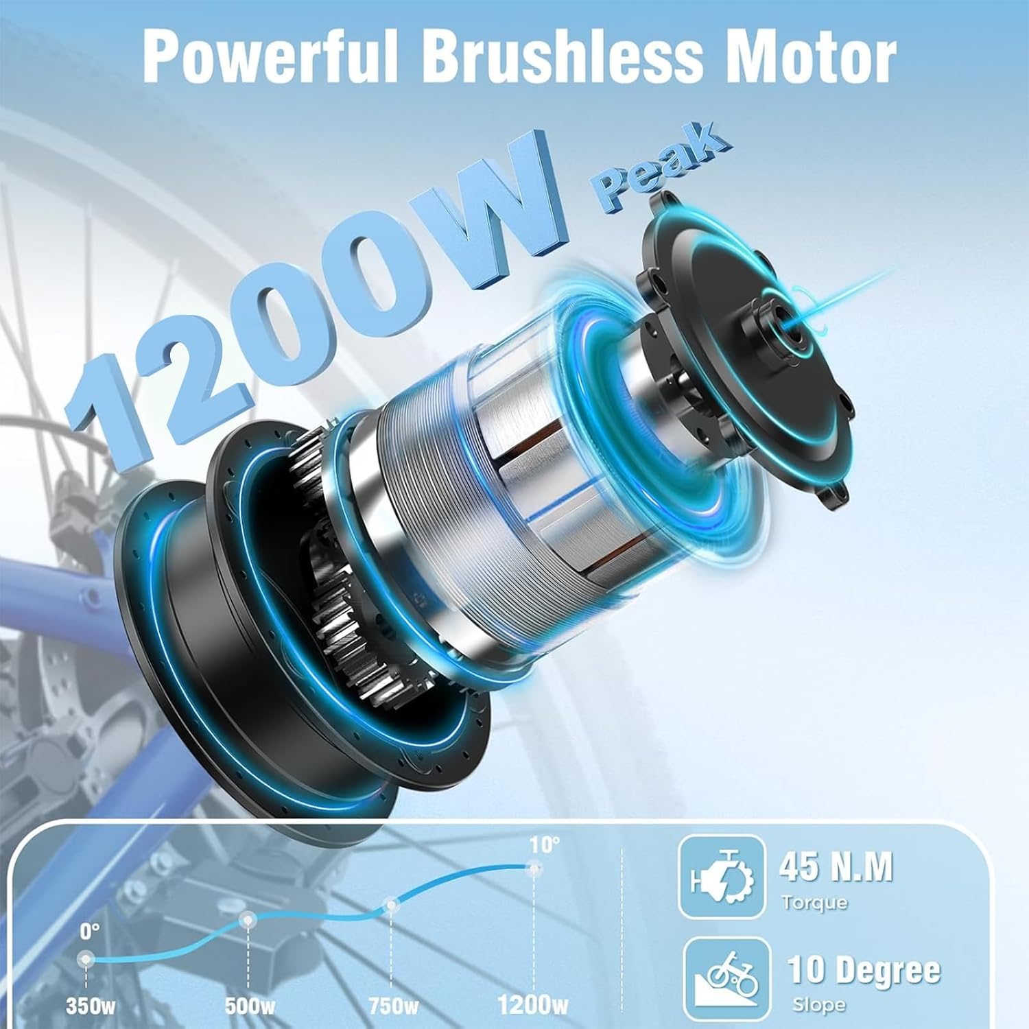 - POWERFUL 1200W PEAK PERFORMANCE & SPEED: Conquer hills, accelerate swiftly, and enjoy thrilling rides with our robust 1200w brushless hub motor. Cruise effortlessly at up to 28MPH, transforming your daily commute or weekend adventure. The e bike paired with a smooth 7-speed Shimano-style gearing system, you have precise control over your pedaling cadence, optimizing power output for any terrain, whether tackling steep trails or gliding through city streets.