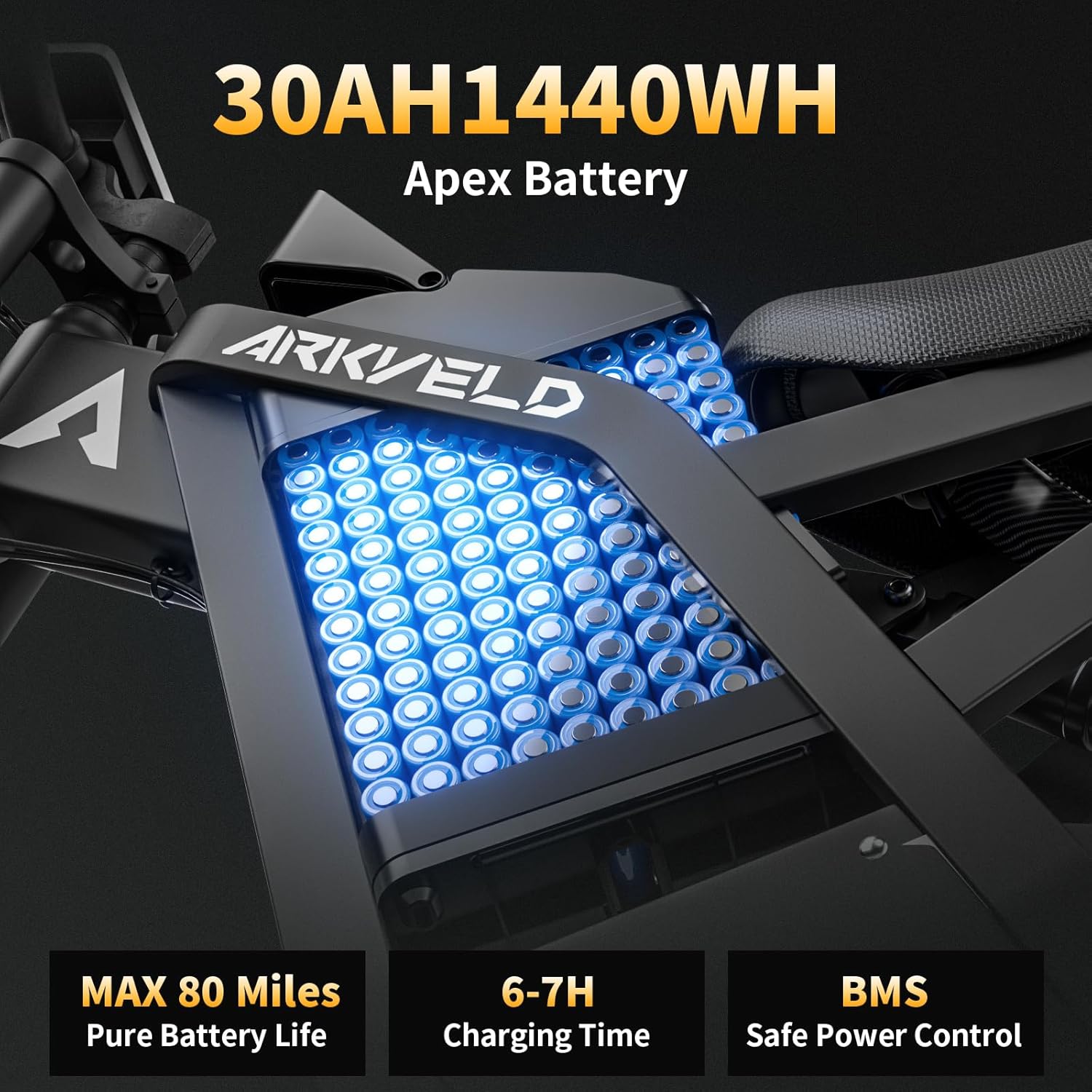Top Pick — discover the Electric-Dirt-Bike for Adults-Mountain-Motorcycle with 1536Wh Battery 32AH, Max 40 MPH and 80Miles Range E-Bike, Peak 3000W Brushless Motor, 25Inch Fat Tire and Front Fork… by Arkveld, built for performance and designed for life in the United States.