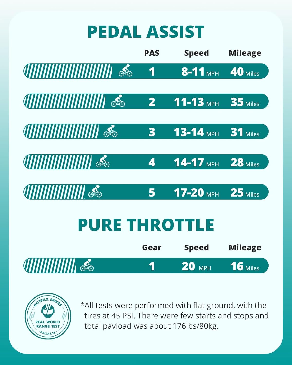 I have had this bike since the end of October 2024 the gotrax r1 and let me just start by saying this is hands down the best ebike I have come across as far as value for money !!! I have put well over 1000 miles on this bike and it gets around 20 miles per charge on throttle only mode. It is user friendly and I remember when I got it the instructions were very clear and it was an easy to put the wheel in it came with tools as well. Let’s talk about features this bike comes with a 48 volt battery up tested might I add making it acceptable anywhere that usually does not accept lithiom ion battery’s as well as giving the user peace of mind (no one wants there ebike to become a suicide bomb so that alone is a huge reason to buy this bike it has 5 speed settings which are customizable in the program menu for peddle assist throttle is not effected by the pedal assist settings.moving onto speed this bike easily does 20 in full throttle and have gotten it to go 35 down hills there was no worry or speed wobble at those speeds and I was very happy with the balance and overall handling. The battery can be charged in or out of the bike and it comes with two keys for the battery and one charger which comes with a voltage regulator. The customer service of this company is unmatched I unfortanly had an accident on this bike about 4 weeks back now in which I cracked the screen it was my fault for being on my phone with one hand I have since got a phone holder but the craziest part with the screen cracked and I mean CRACKED PIECES LITTERALLY MISSING it still turned on and worked up until I replaced it with the new screen. Go trax does a two year warranty and all I had to do to get my new parts was to contact them via email to submit my claim including a picture of the problem as well as my order receipt number which is very easy to find on amazon. I must say as I use this bike every day I am so very thankful to the go trax support team for there quick response to my claim and getting the parts shipped under warranty completely free of charge! They really honor and value there customers which is rare for a company nowadays and I will most definitely be purchasing from them in the future I already have my eye on an electric dirt bike they make and am currently saving for it. i use this bike for Uber eats and for commuting to and from work so this has been a game changer as far as not having to take care of a car pay gas prices insurance registration or inspection fees. The only con I can add to this review is that after about 3 months of use the screen had a bug where when I would turn on the bike it would do its normal count up and countdown but instead of the display coming on normally it would default to the settings menu and wouldn’t let me exit. I called Amazon support and they contacted go trax who said theyd replace the bike under warranty. Being that I use this to commute I didn’t want to wait for the time it would take to ship a new one and decided to see if there was a way to fix the big myself. I spent almost two hours string different things but I finally figured it out and the bug also never left that screen but to anyone who may have the same issue you just turn on the screen like normal and on the control buttons on the top right above the light button when the number gets to 9 on the count up you press and hold and it will exit that screen to the normal display and function as normal. So even the only con I can list turned out to be a blessing in disguise because I realized no one could steal the bike if they had the chance because no one knew about the bug and how to exit the screen it was like having my own little extra security. Fortunately the new screen looks and works just fine I’ll end this review by saying I highly recommend this and any gotrax product to someone who is looking for a product that will last and be confident about the performance thank you again gotrax for this wonderful bike and the a