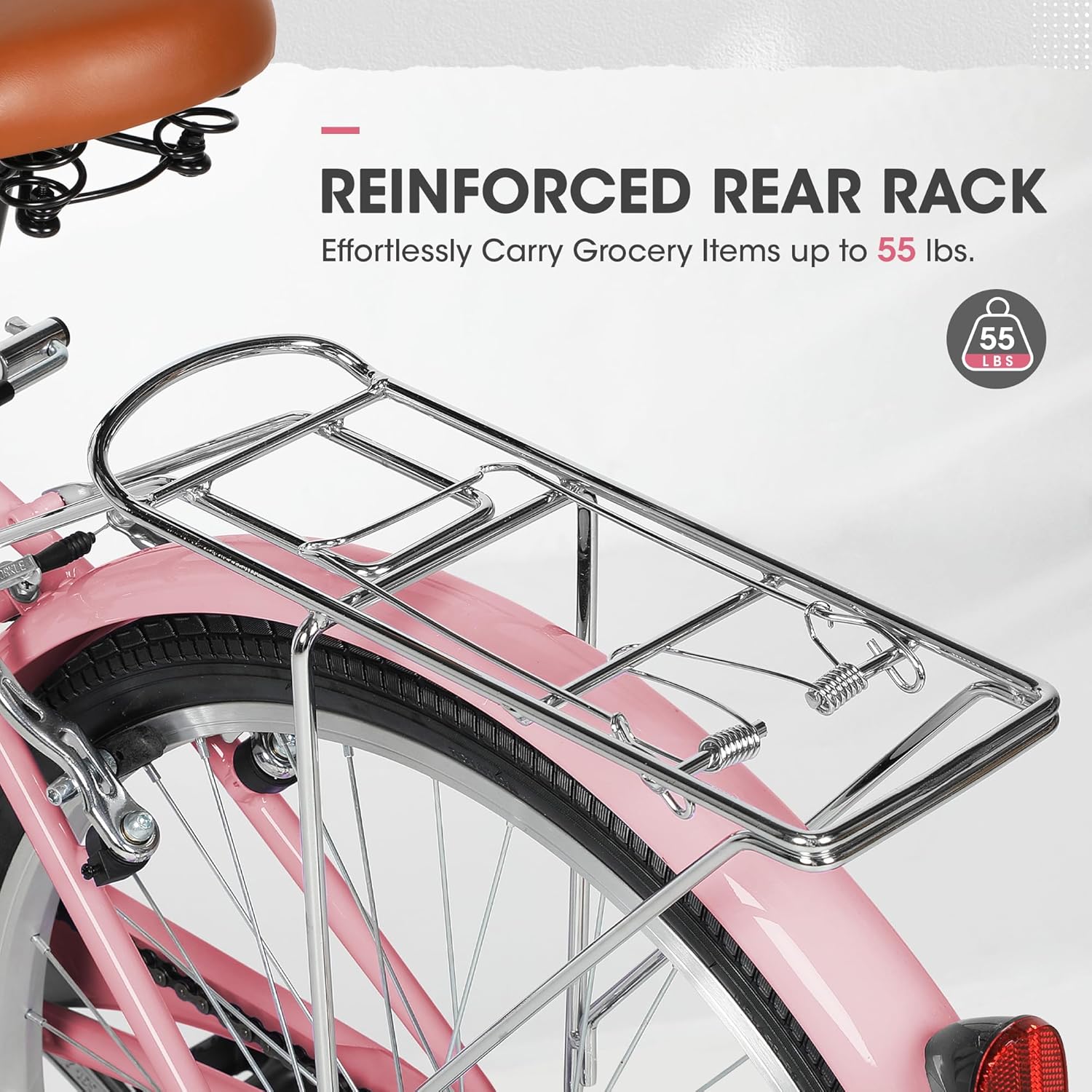 Photos: Outroad Beach Cruiser Bike, 24/26 inch Commuter Bicycle for Adult Men and Women,High-Carbon Steel Comfortable City Bikes with Rear Rack or Basket by OUTROAD OUTDOOR CAMPING GARDEN PATIO
