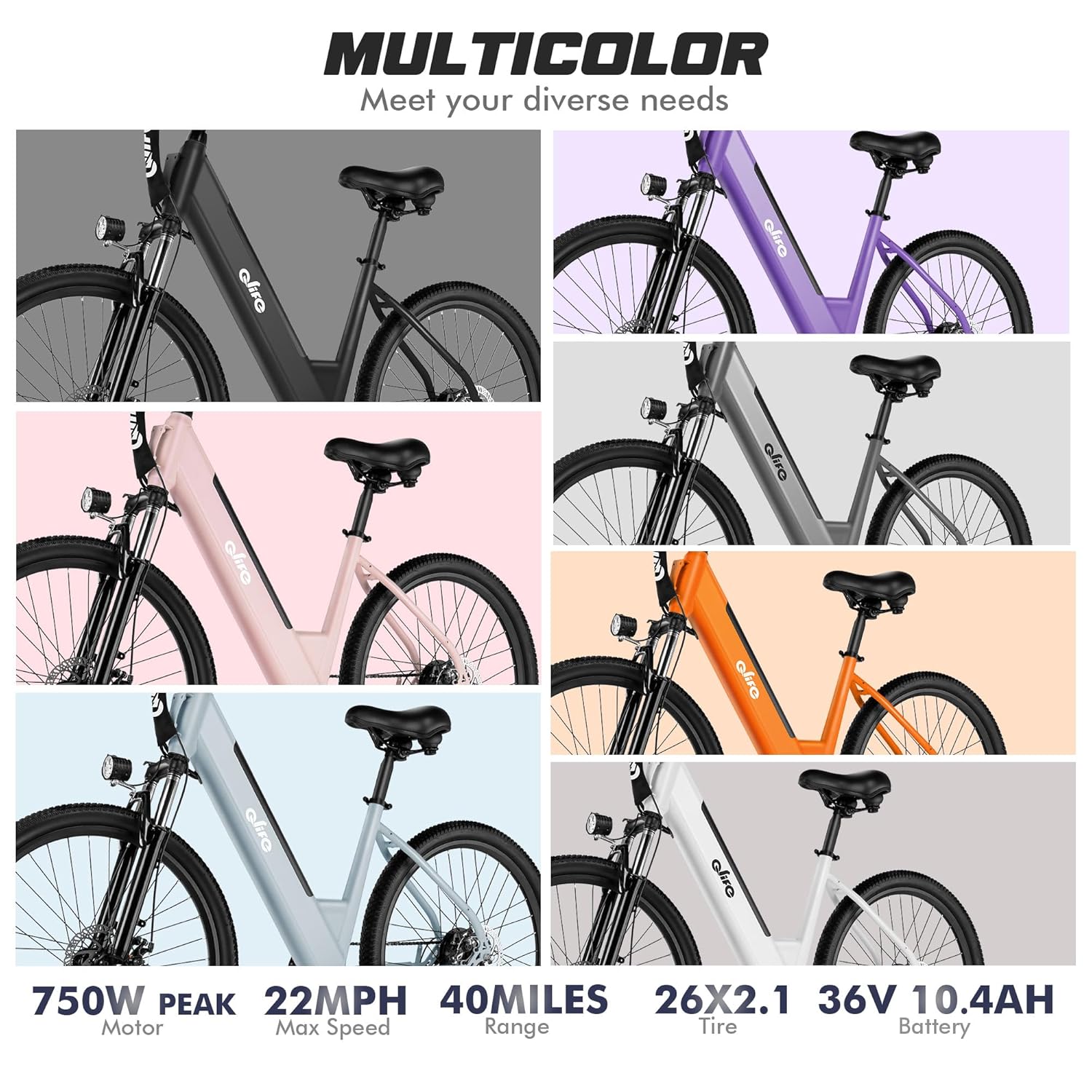 - 0.2″ Wider Tires:The electric bike comes with 26″*2.1″ tires, which provide better comfort, stability and grip than regular 1.95″ tires for driving on slippery surfaces such as mud and sand.