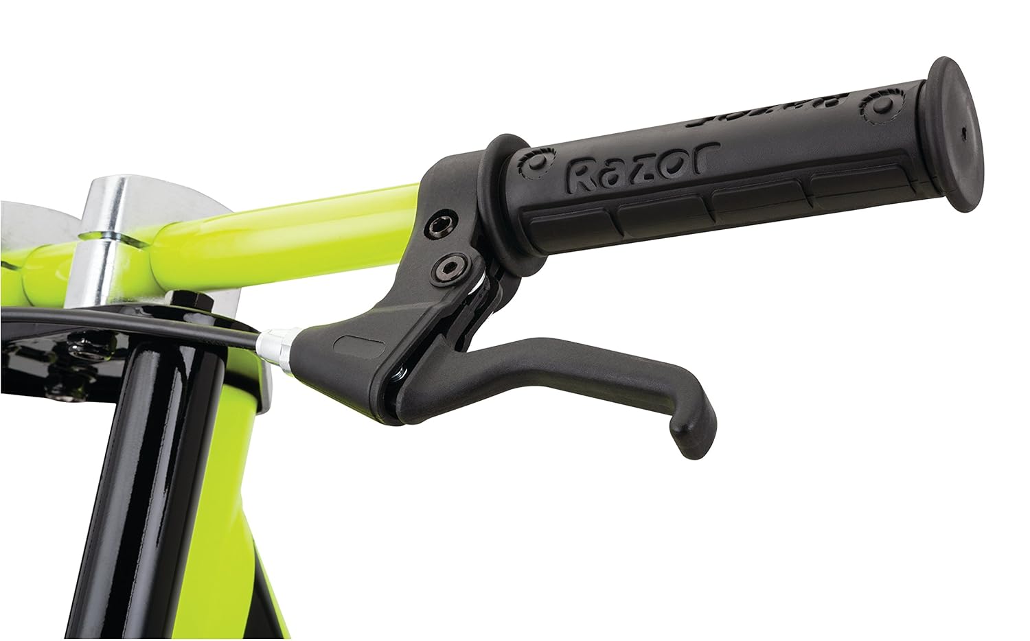 - Features: moto-style handlebars, pro-style grips, triple crown fork, adjustable bucket style seat, and tow hook attachment, grip tape on rear axle