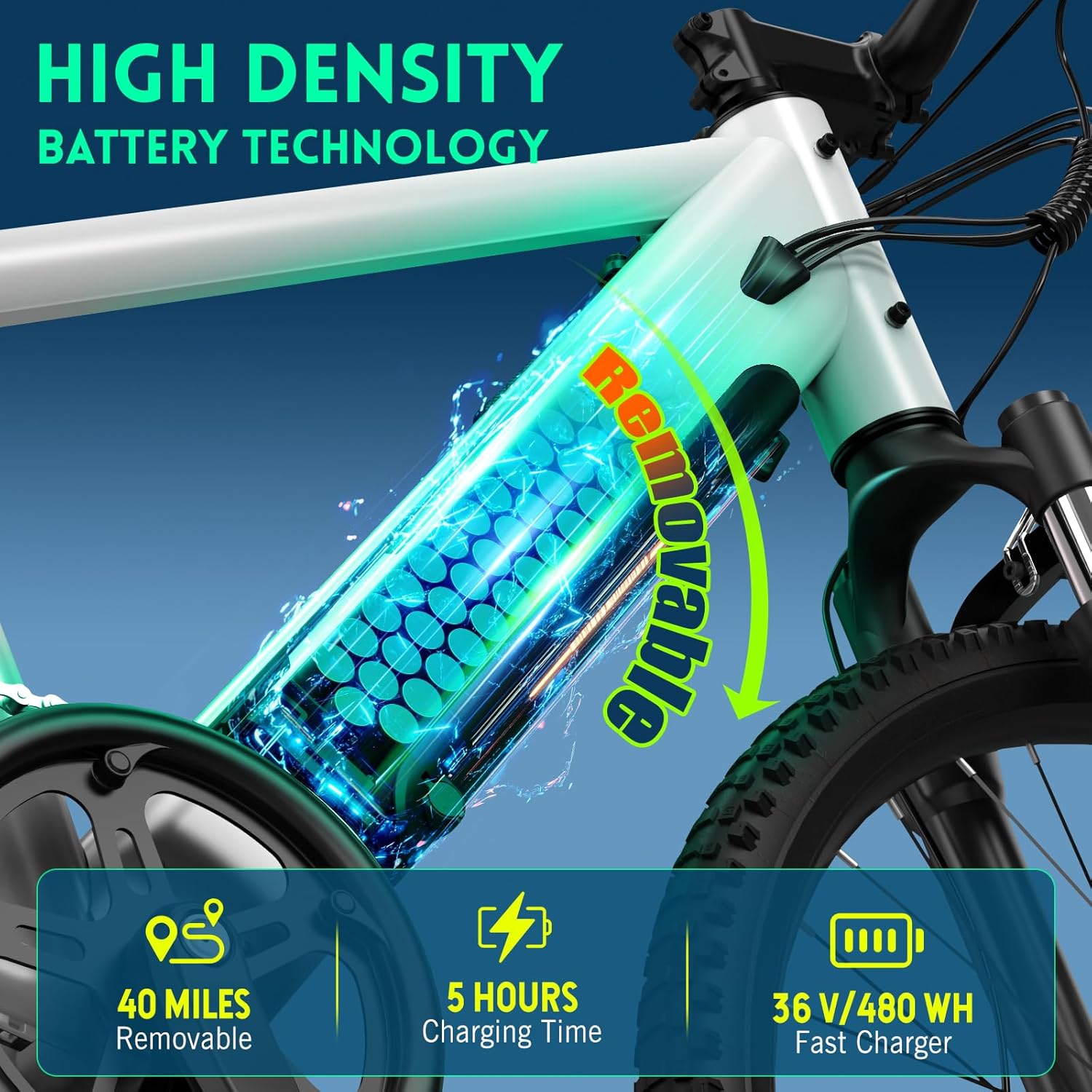 - REMOVABLE LARGE BATTERY: The e-bike is equipped with a 480 Wh battery with a range of 40 miles in 5-6 hours of charging, making it ideal for travelling or daily commuting. The battery used in the TST has advanced over-temperature, over-voltage, and over-charging protections, providing reliable performance and a longer lifespan.