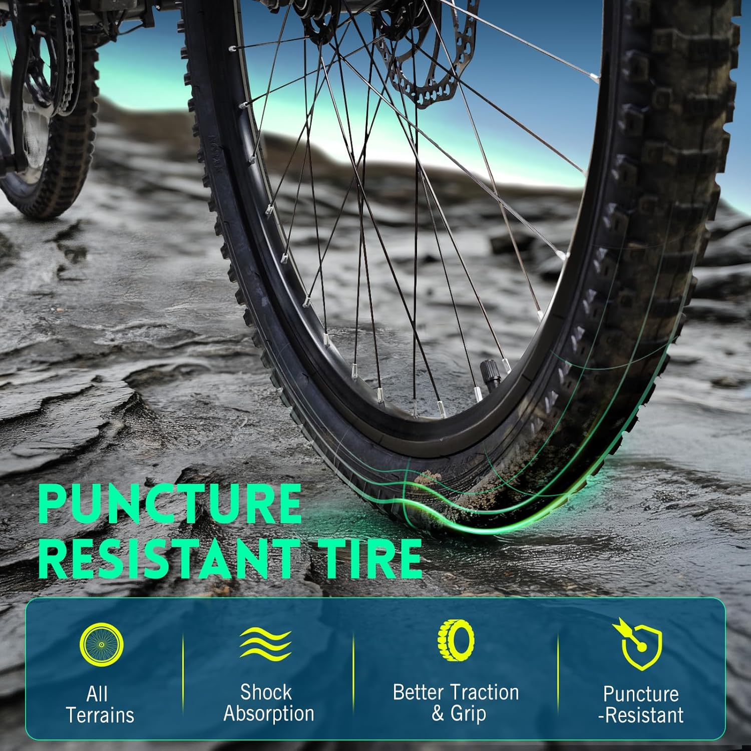 This electric bicycle for adults is very affordable and is very suitable for novice riders.The durability and quality of its tires are better than I expected. I have used it to ride on some forest mountain roads and muddy roads. It has 80% of the components installed in advance. It took me less than 20 minutes to assemble it. It runs very fast and has a good battery life. Its brakes and shock absorption are also good. In addition, the speed can be displayed on the LCD.