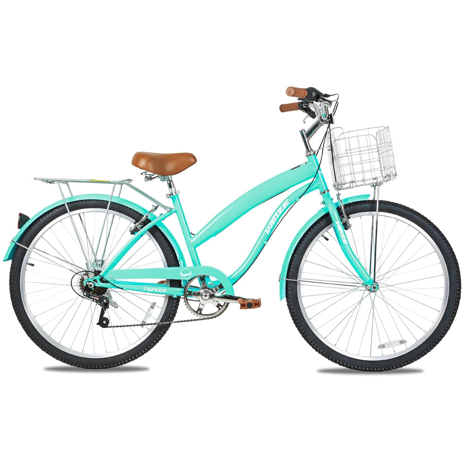 - 【Front & Rear Storage】: This women’s bicycle features a stylish front basket and a reinforced rear rack, enabling you to effortlessly store groceries, carry essentials.Store small items in the front basket and keep everything clean with the front and real fenders.