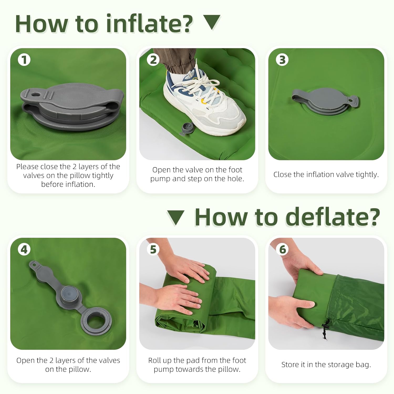- 30s Foot Pump Inflation & 1s Deflate – No hand pump! Built-in foot pump inflates in half a minute. Upgraded no-leak valve ensures all-night firmness.