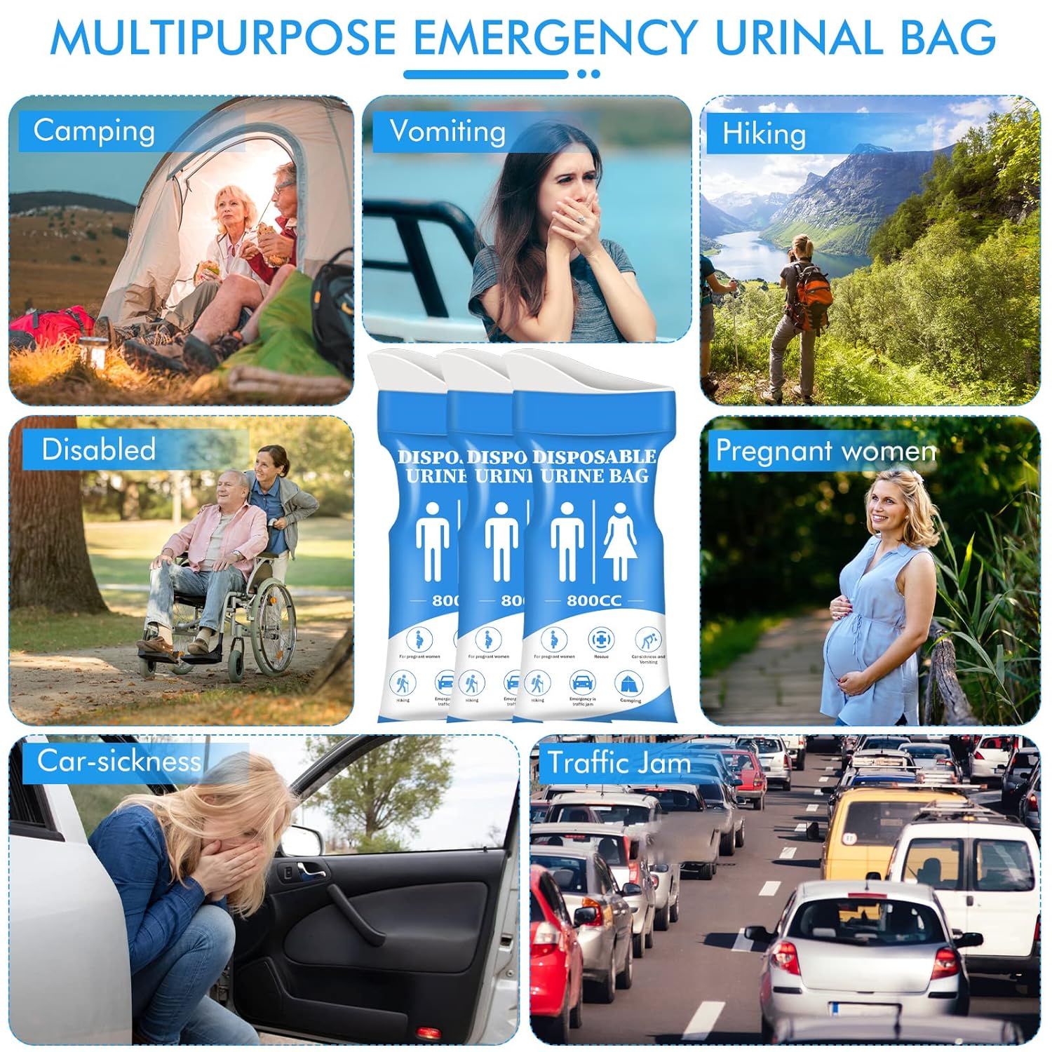 - 【Unisex urine bag for emergency】Our disposable urinal bags are suit for female and male(adult/child/elderly) to relieve emergency urination, strong sealing don’t worry it will leak, great for patient people and pregnant female during traffic jams or travel.