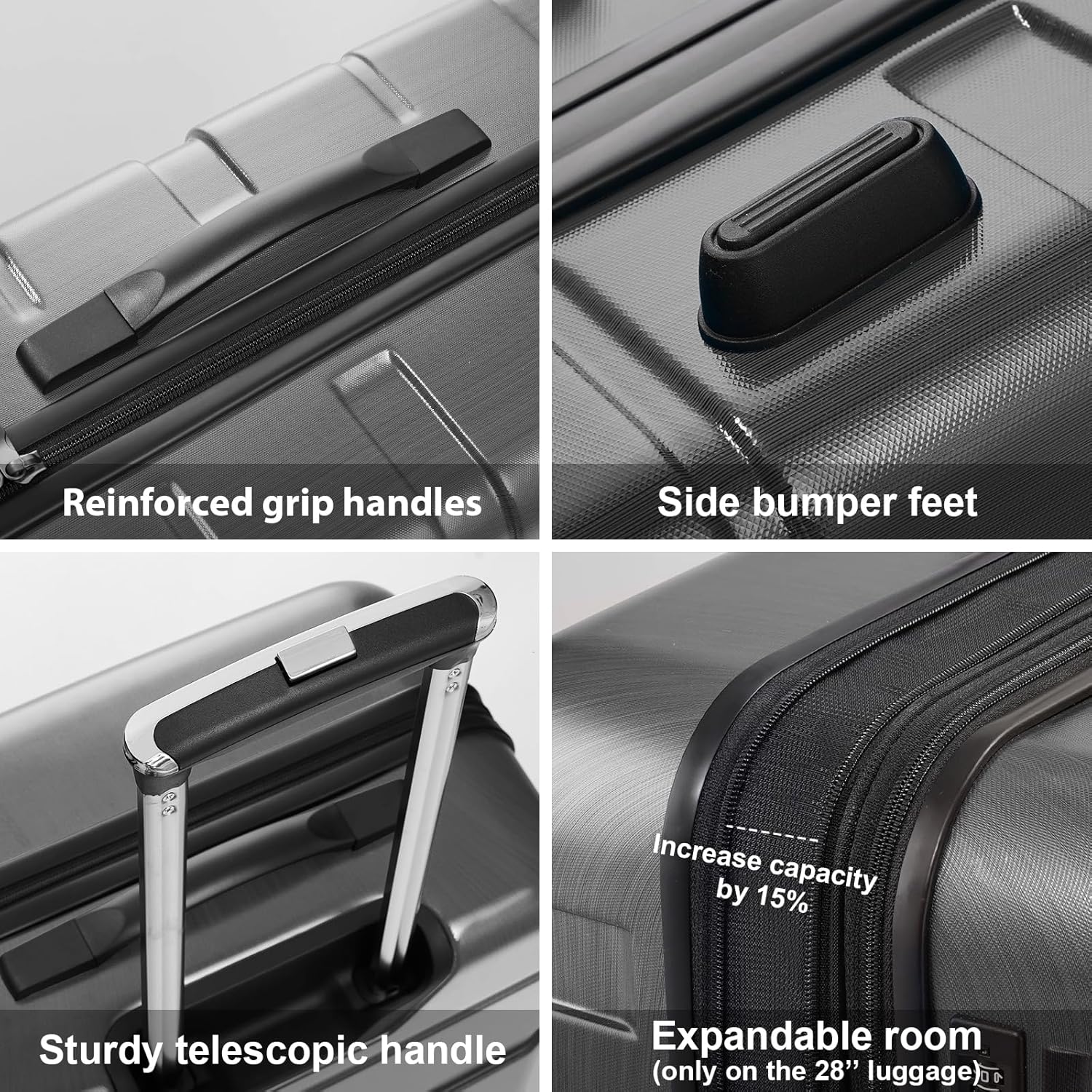 About Coolife Luggage Expandable(only 28″) Suitcase PC+ABS Spinner Built-In TSA lock 20in 24in 28in Carry on (Charcoal., L(28in).)