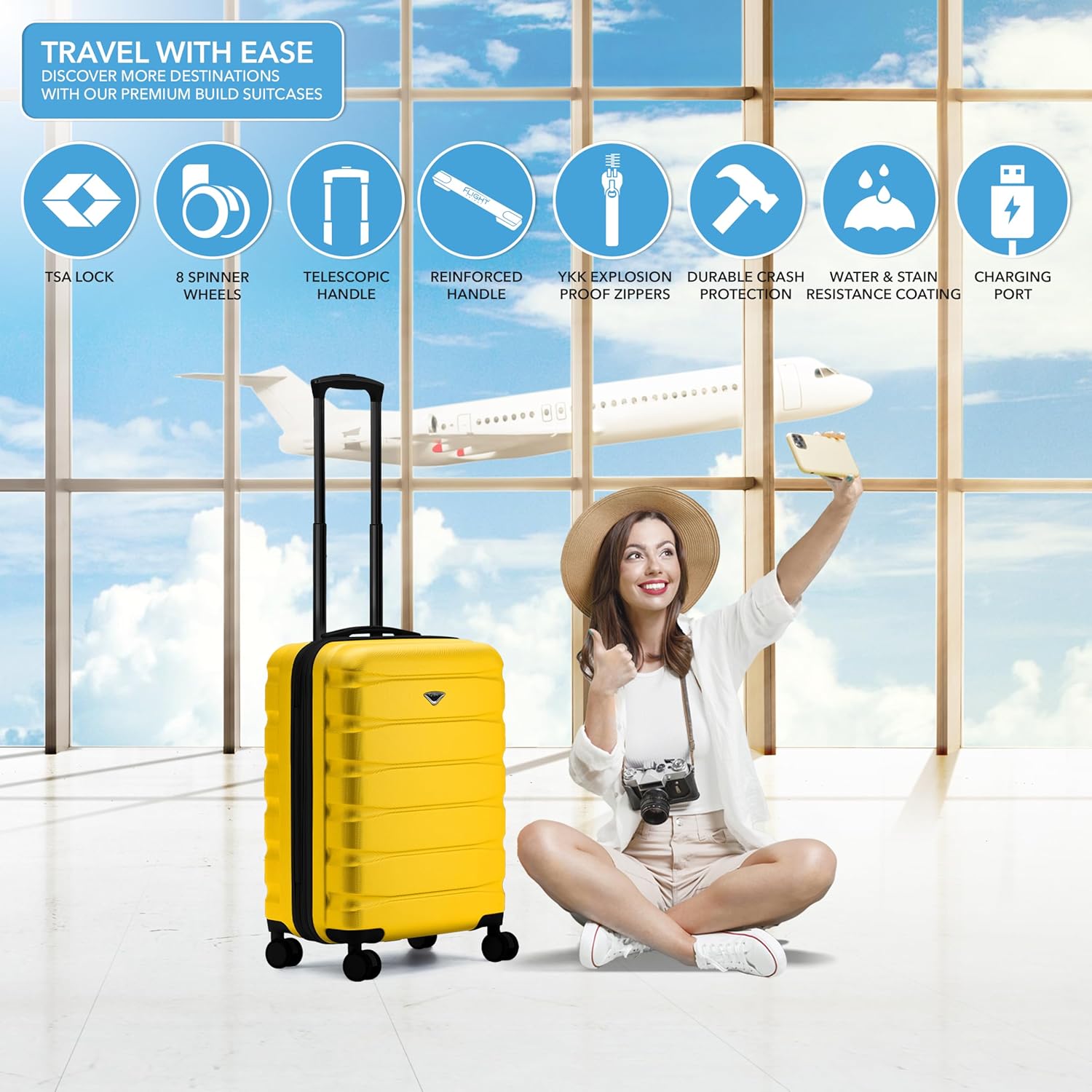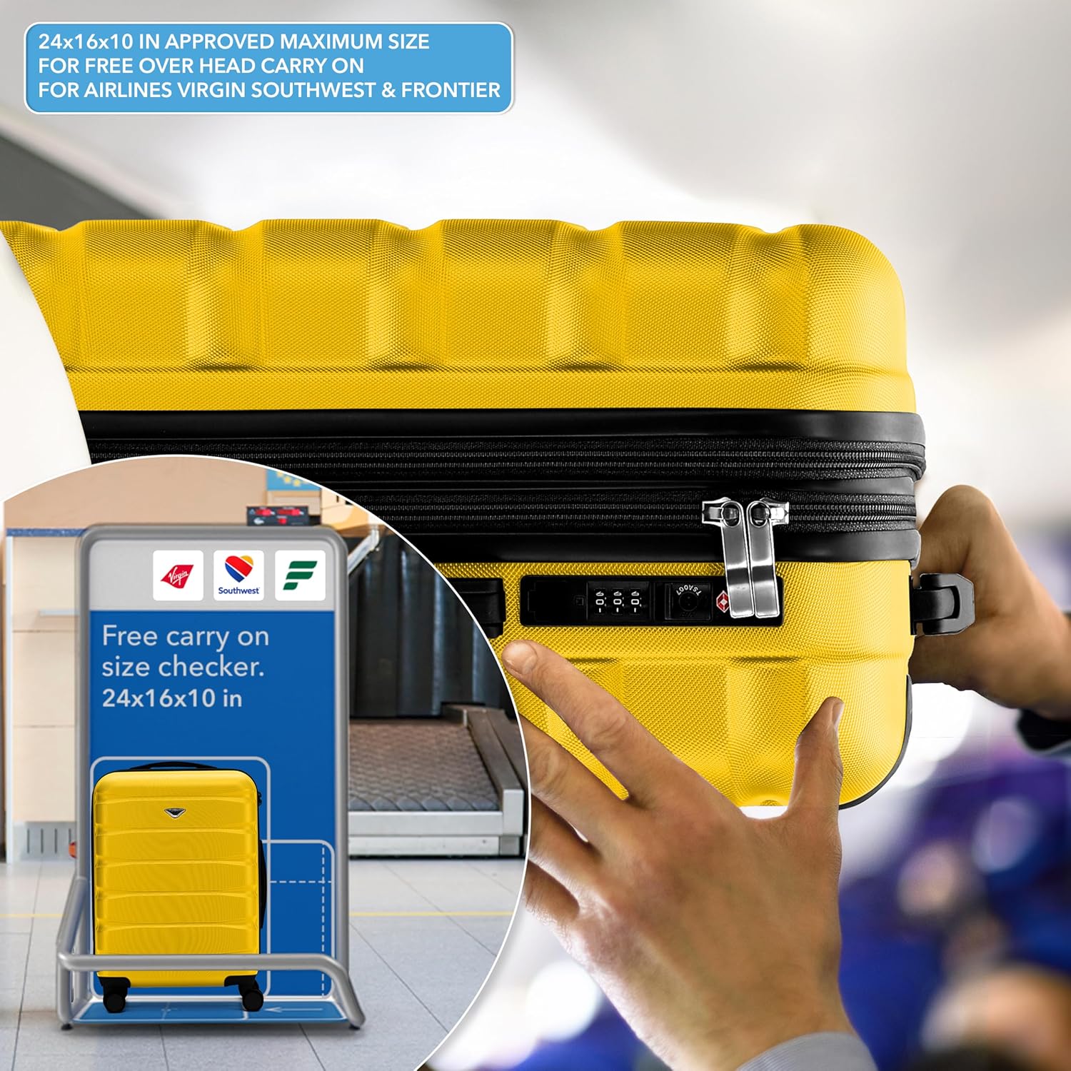- AIRLINE COMPATIBILITY: The cabin size luggage in this set is compatible with over 100 airlines operating in the USA and around the globe. Including overhead carry-on for South west, Virgin and Frontier approved airlines. Tested using the airlines baggage sizer this cabin bag comfortably fits in the overhead locker and will avoid airline charges. The perfect purchase for your next trip by plane, train, vessel, coach or car.