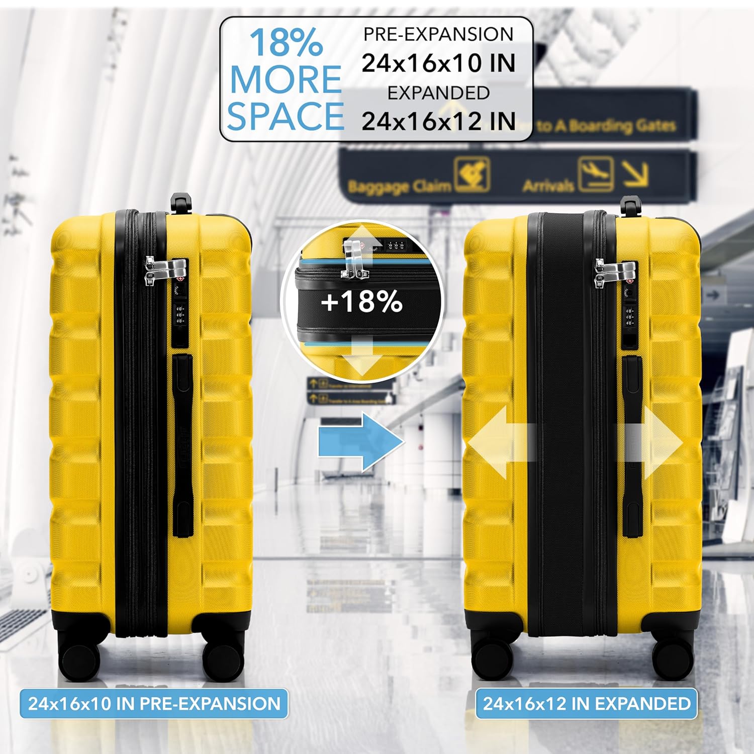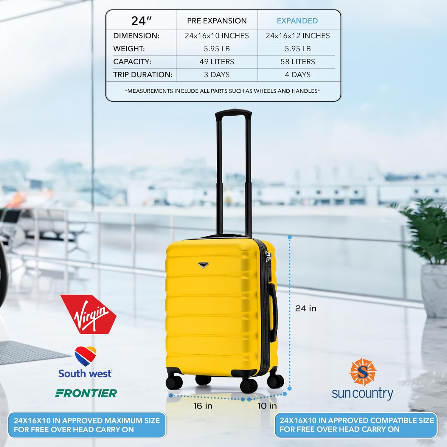Photos: Flight Knight 24x16x10 Expandable Carry On Suitcase Hardside TSA Lock USB C Lightweight Luggage Silent Double Spinner Wheels Maximum Overhead Carry-On Bag For Virgin & South… by Flight Knight