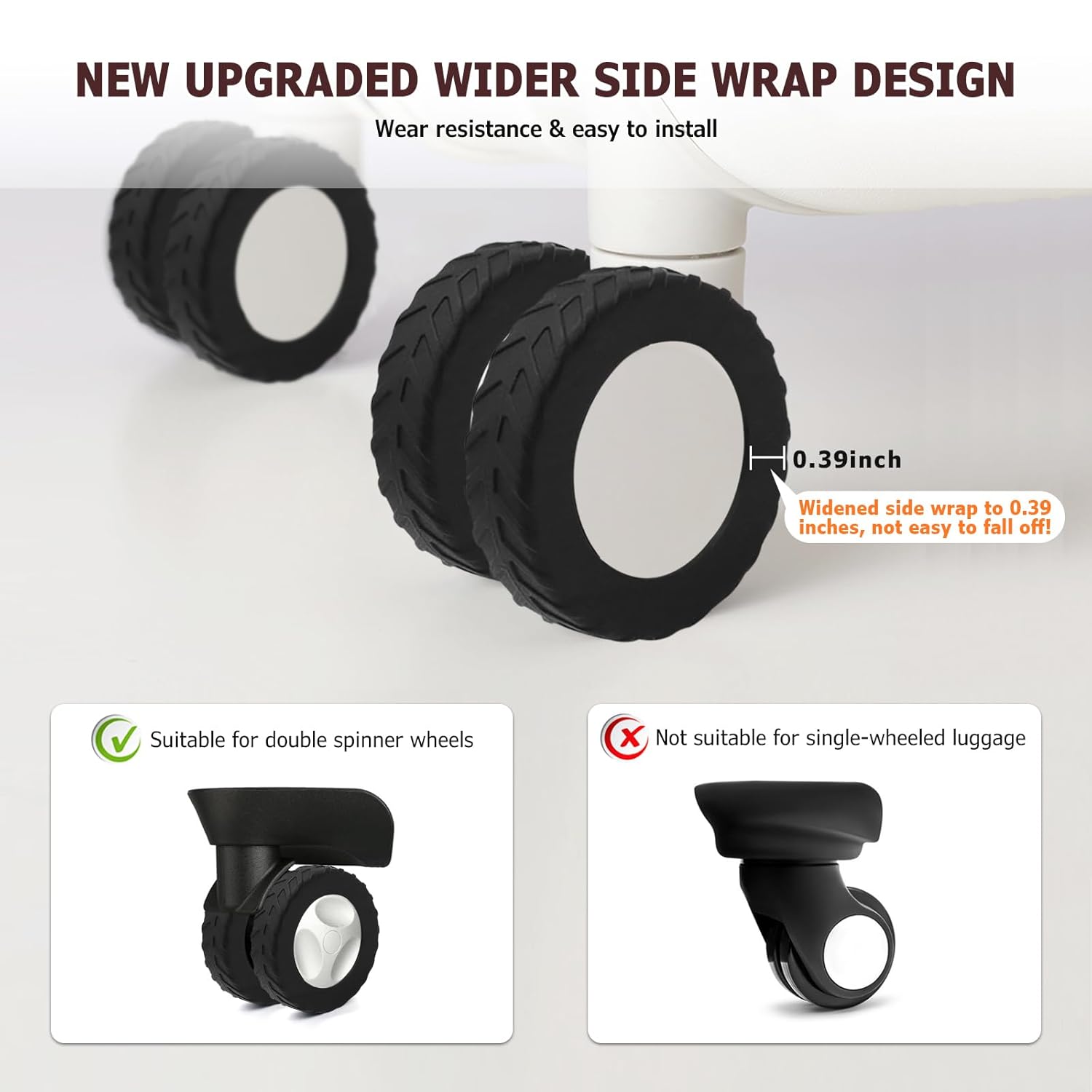 - New Upgraded Suitcase Wheel Protectors: This Luggage Wheel Protector Cover Sidewall width upgraded to 0.39 inch (1.0 cm),widen wrapping areaof the edge,firmly wrapped will not fall off