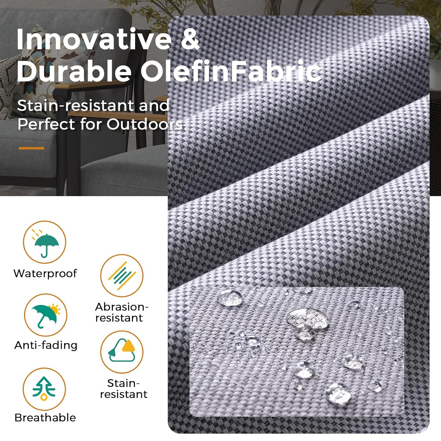 - Weather-Resistant and Easy Care: The 200g eco-friendly olefin fabric covers are waterproof, stain-resistant, and easy to clean. They offer UV protection, ensuring that the fabric remains vibrant and cool, even after extended sun exposure.